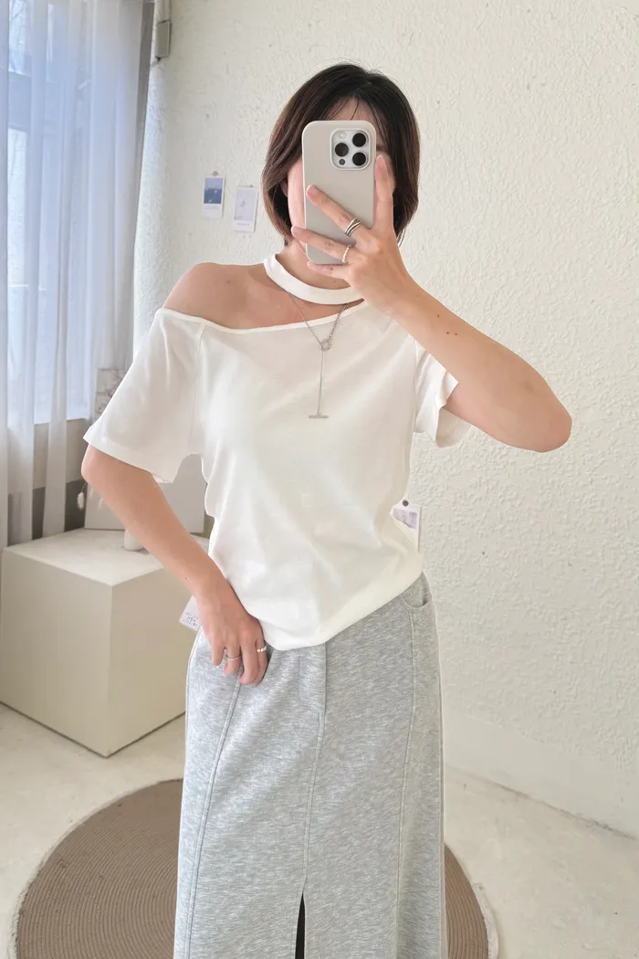 特賣#0705 繞頸彈力棉Tee-白