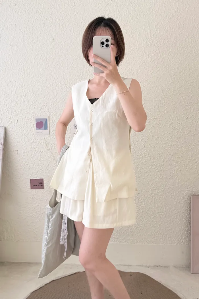 特賣#1621 棉麻背心&短褲套裝