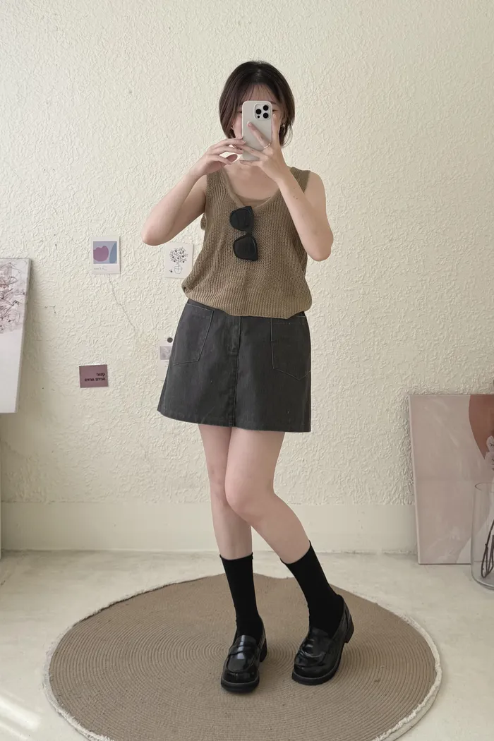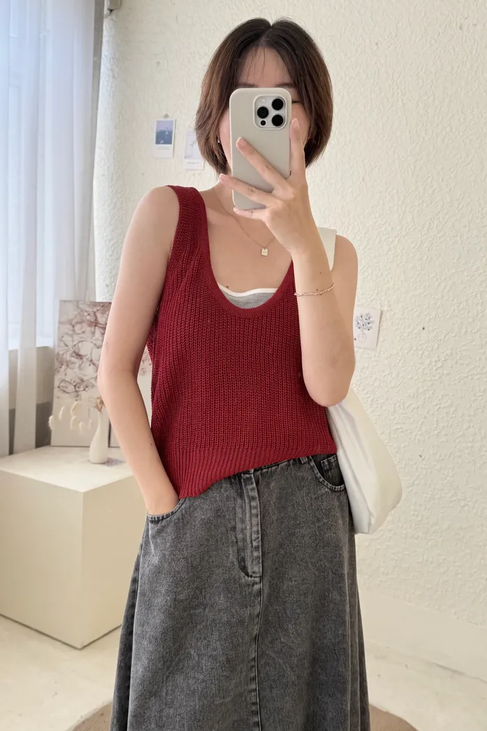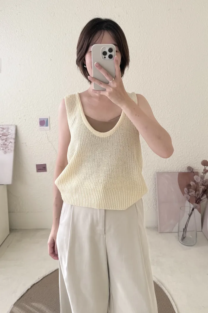 【現貨】#1702 U領簡約粗針織背心