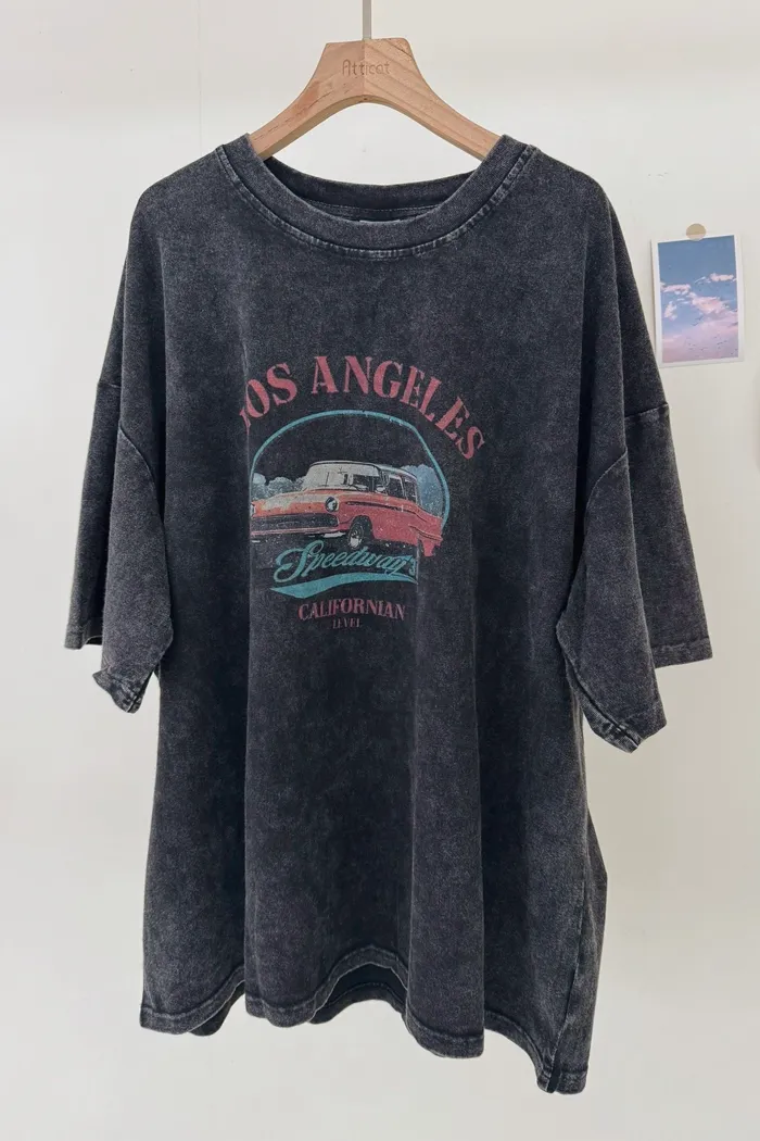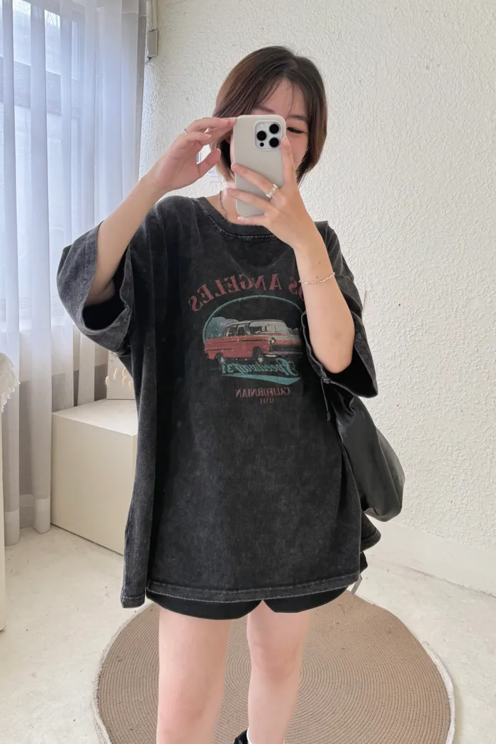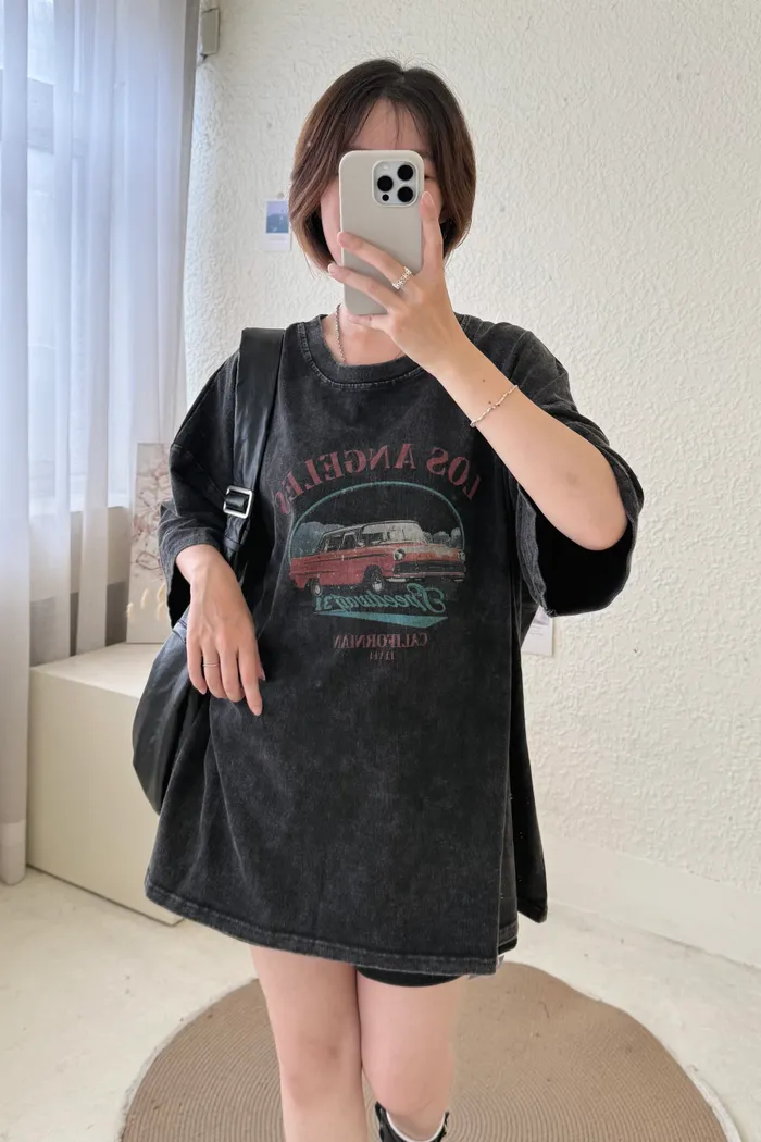 【現貨】#2305 男女共穿.復古汽車水洗寬棉Tee
