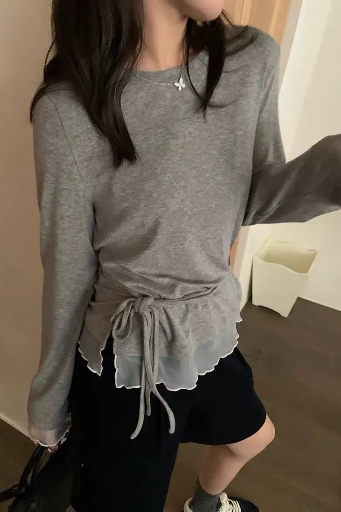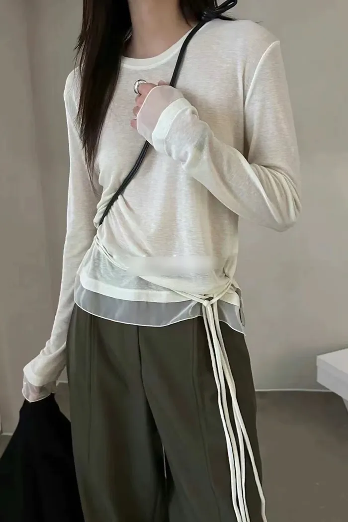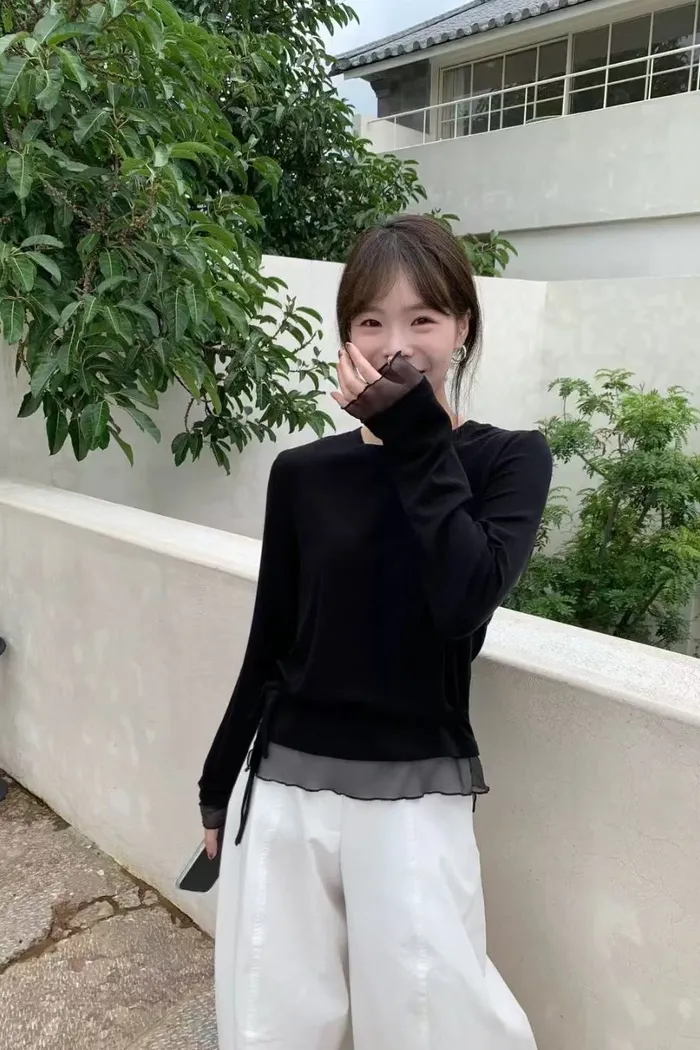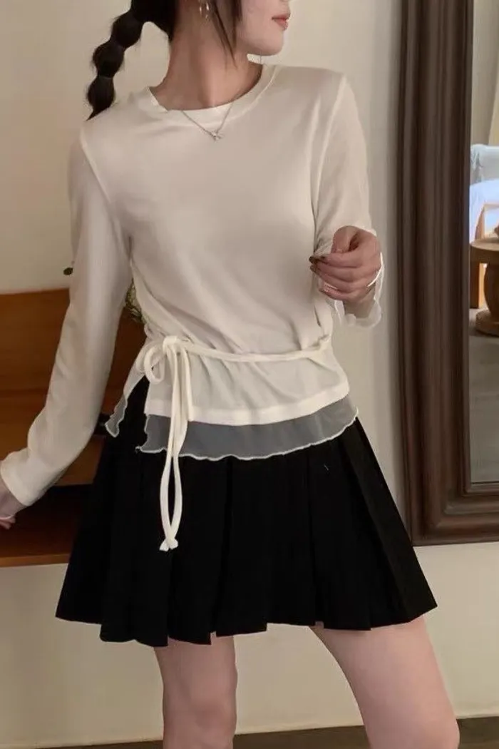 #2306 拼接雪紡紗圓領棉上衣(XS~L)