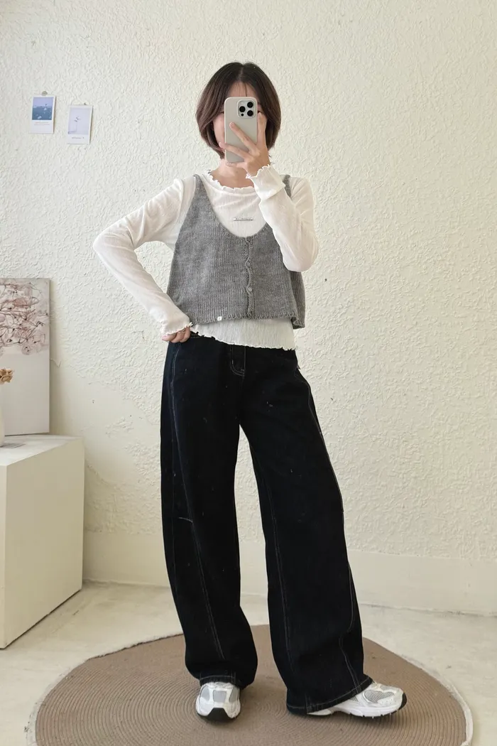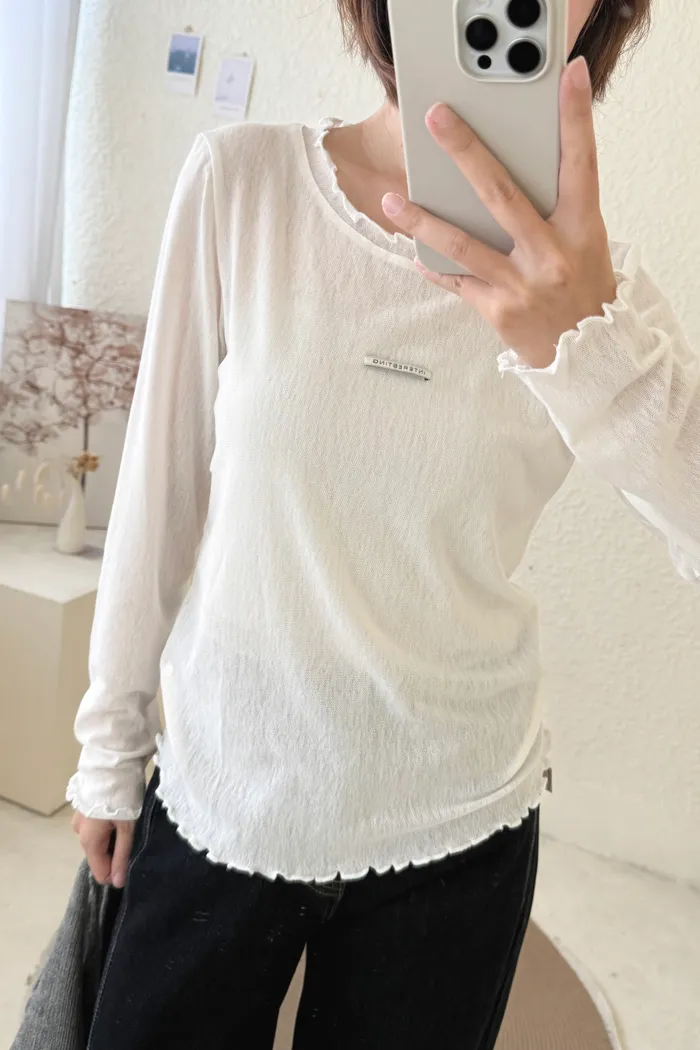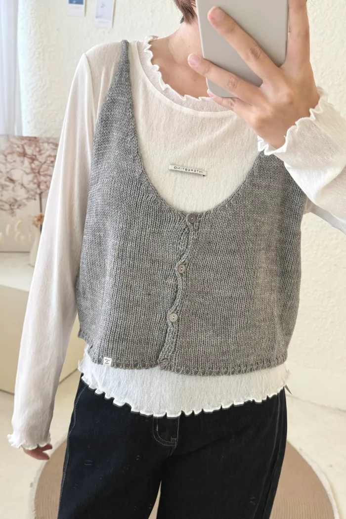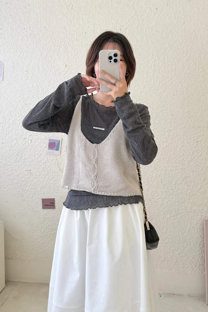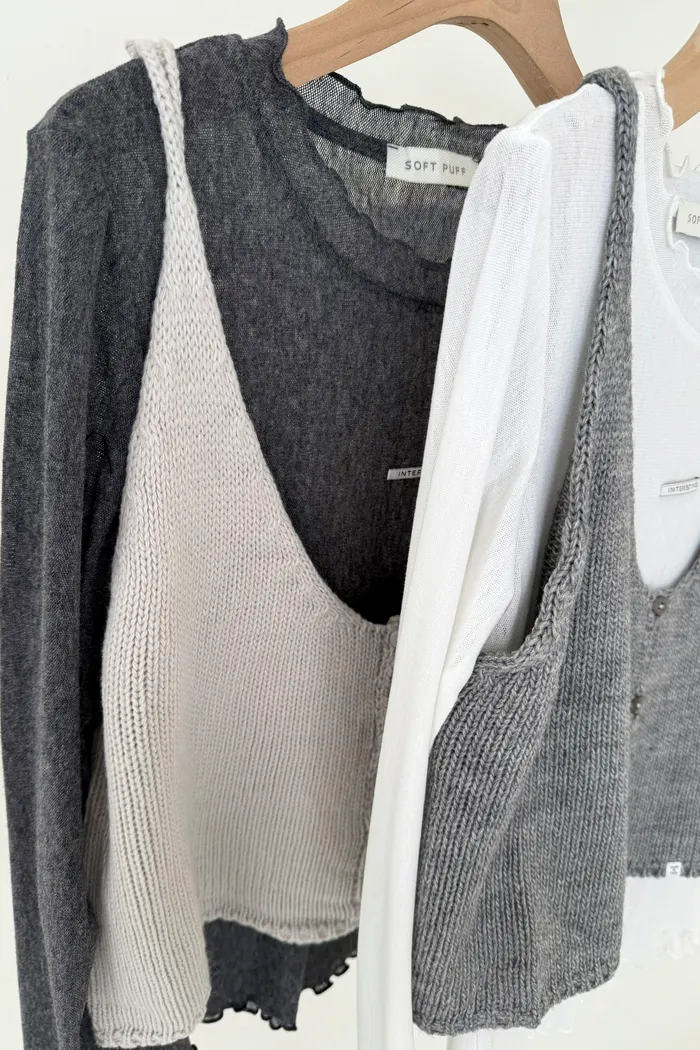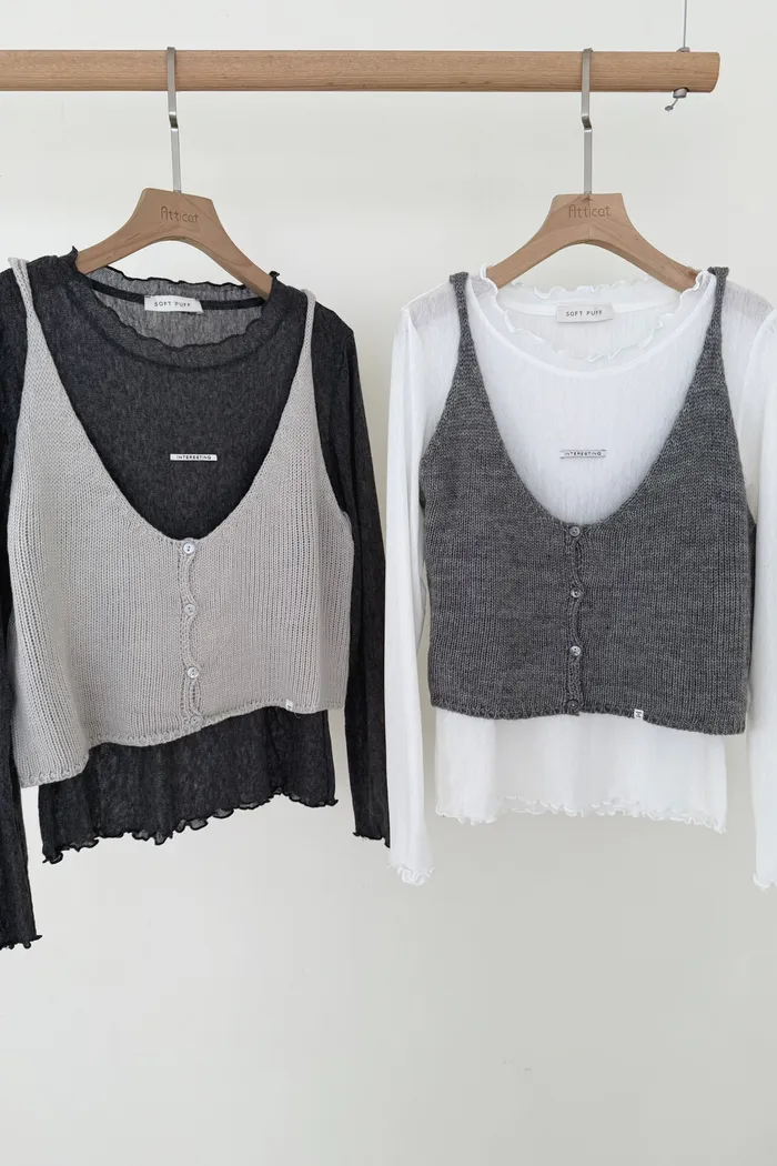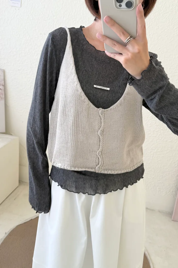 #2608 捲邊背心&小標捲邊透膚衣套組