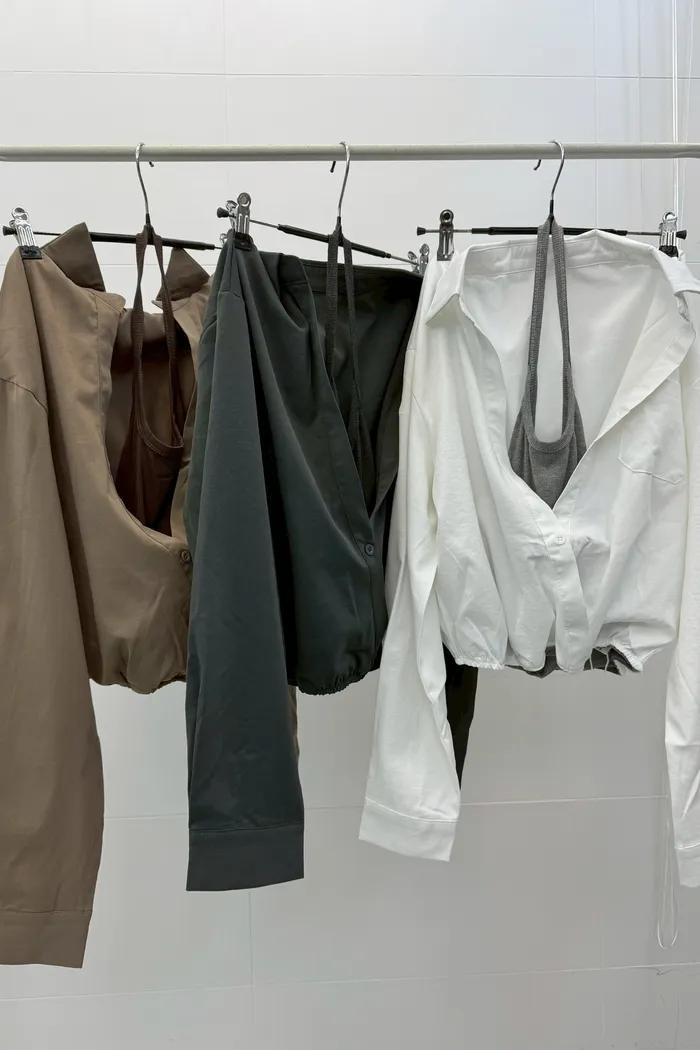 #2702 繞脖背心假兩件襯衫(XS~小L)