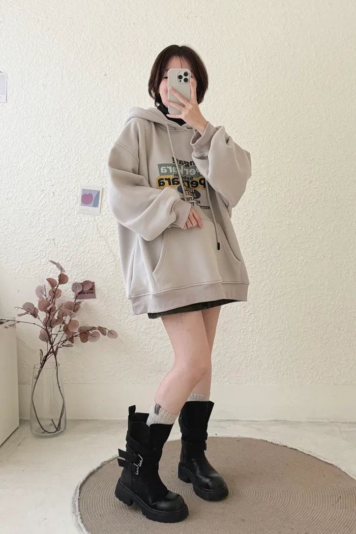 【現貨】#3003 男女共穿.玩酷塗鴉內羊羔絨帽Tee
