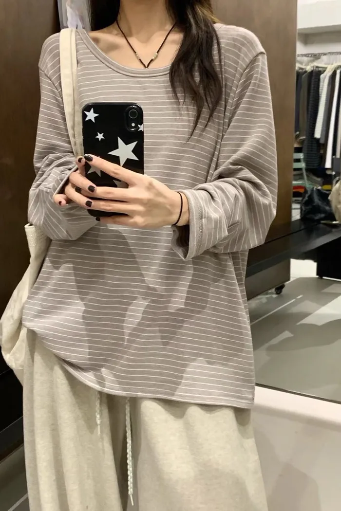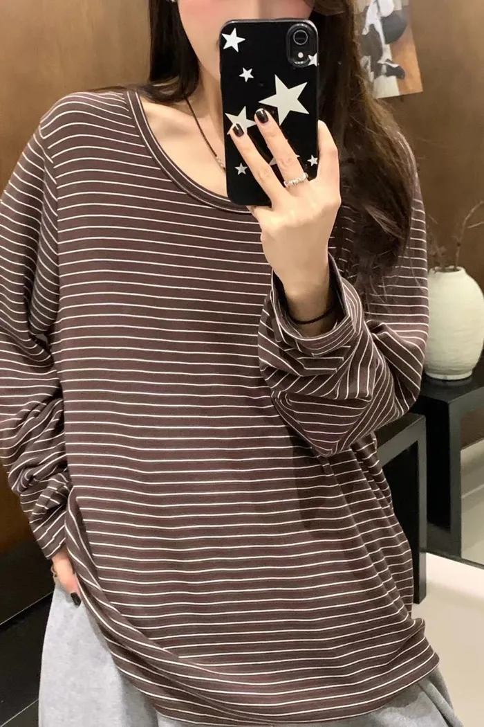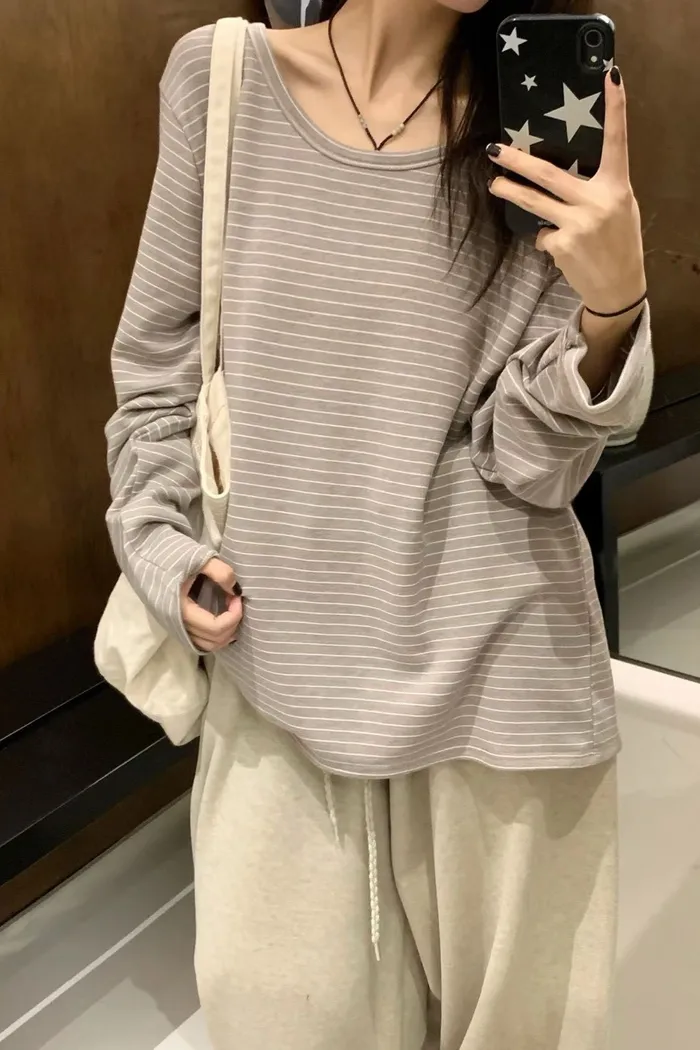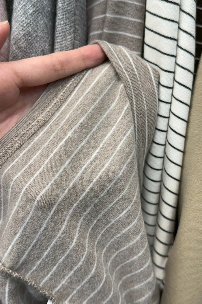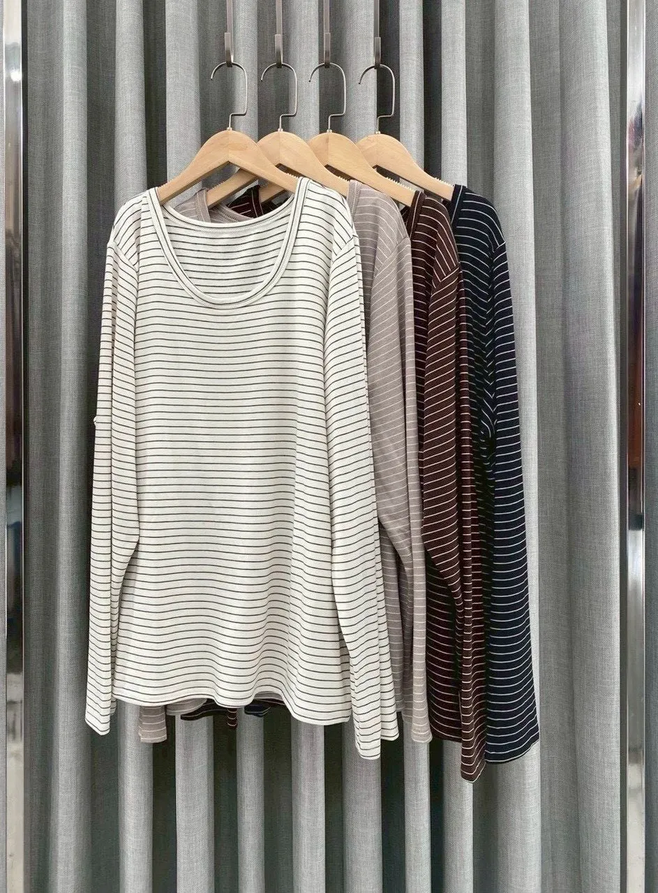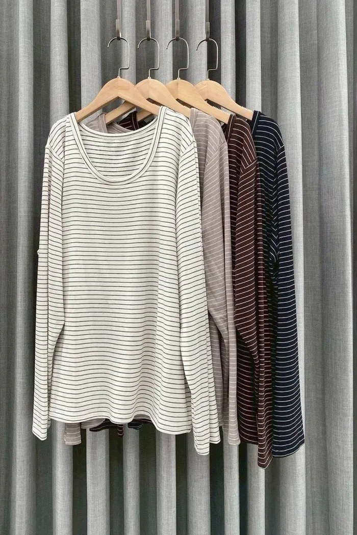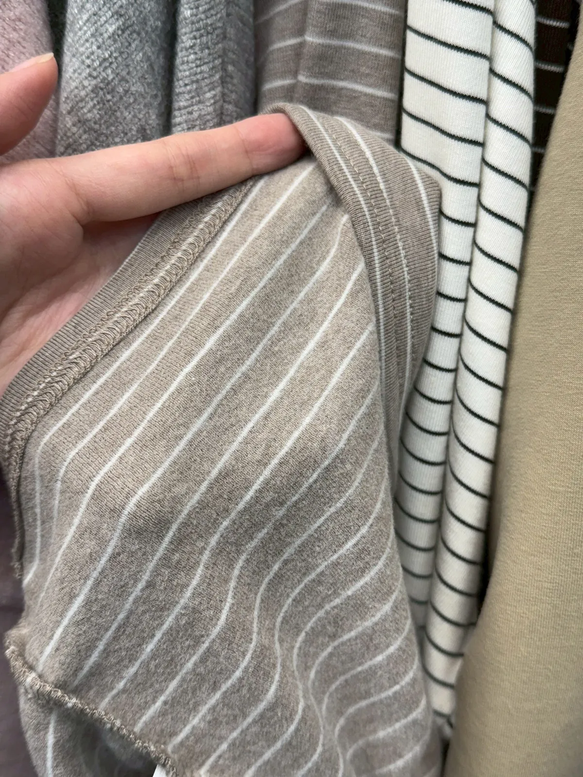 【現貨】#3008 內磨毛彈力棉條紋Tee(S~大L)