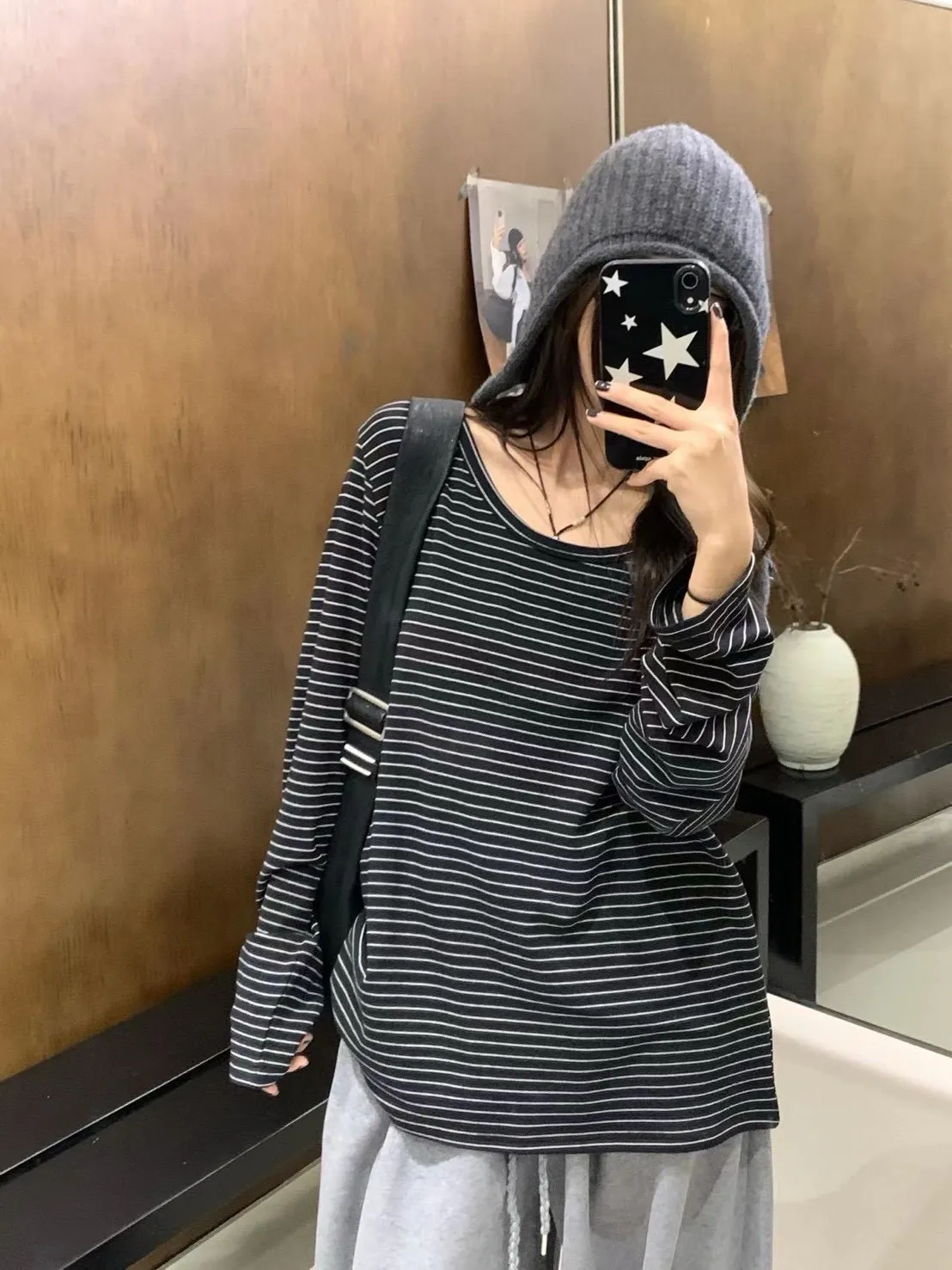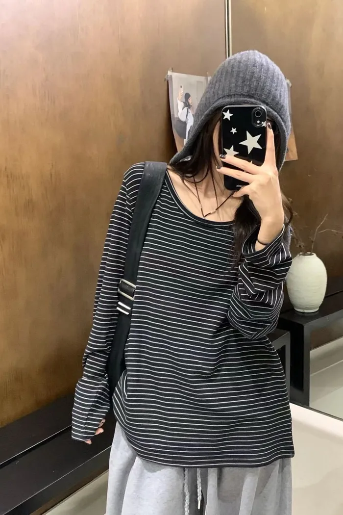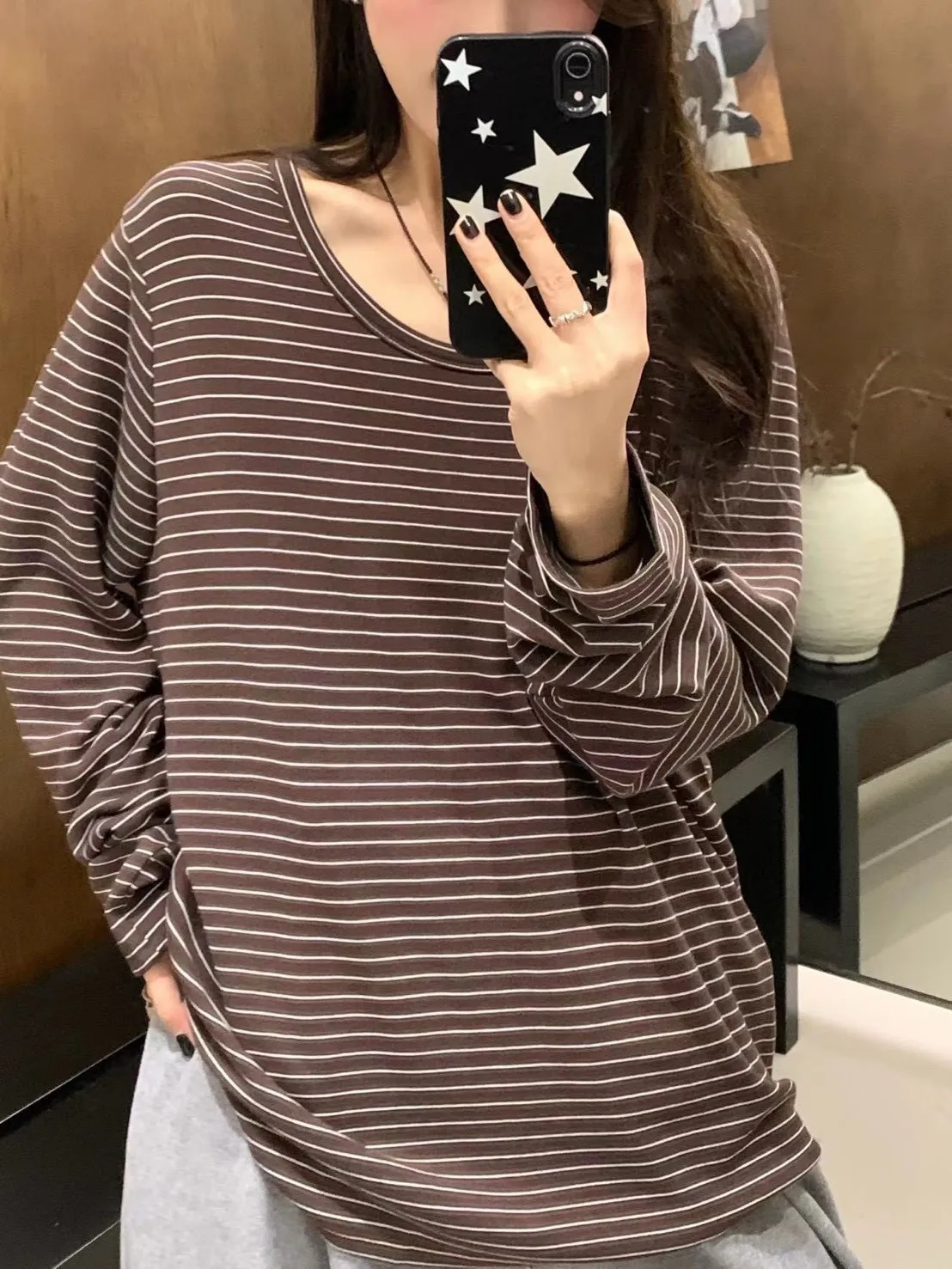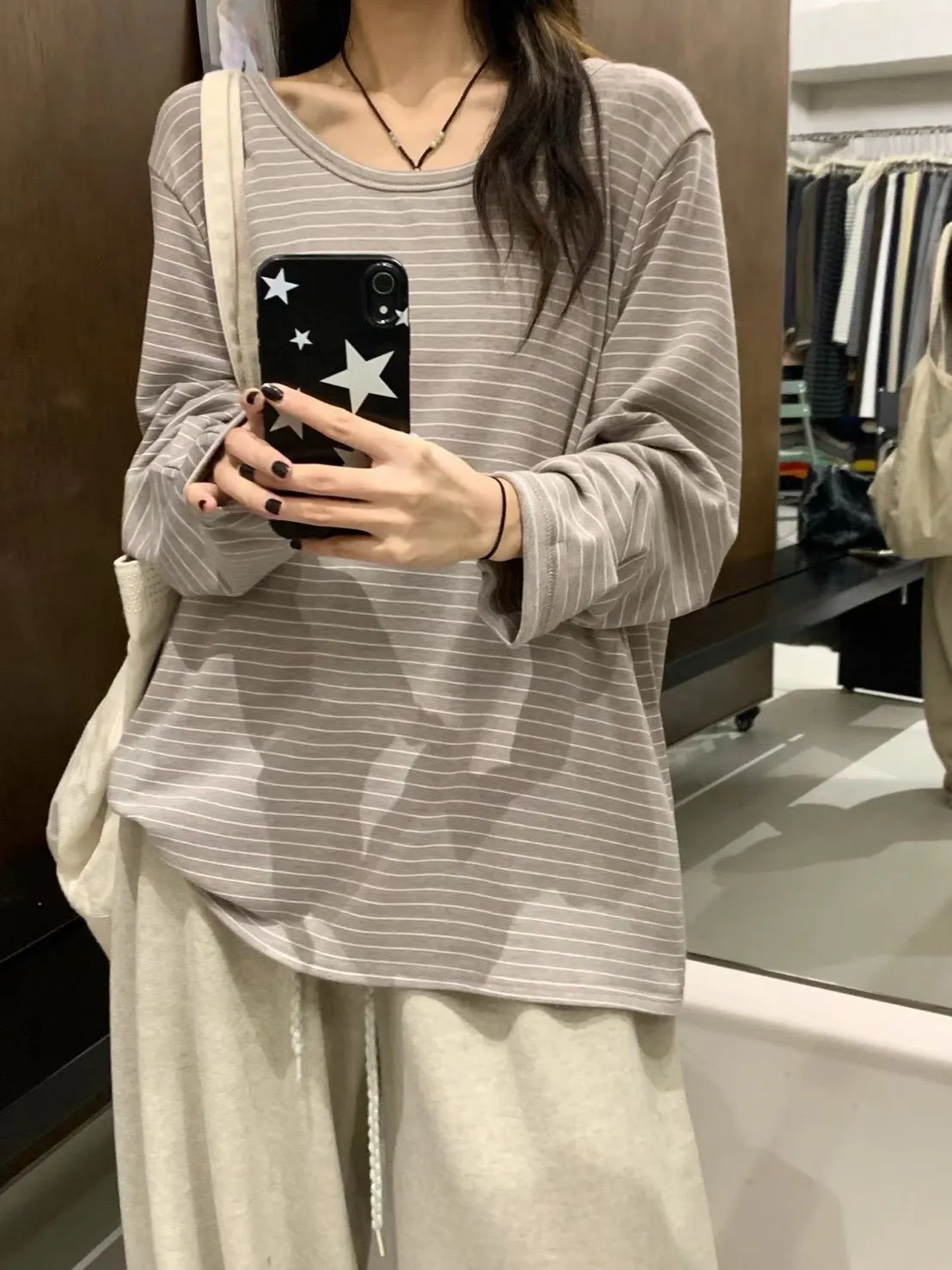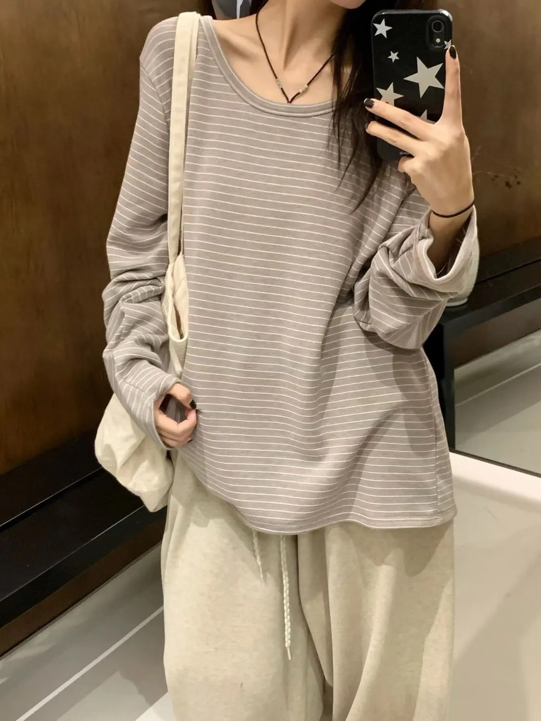 【現貨】#3008 內磨毛彈力棉條紋Tee(S~大L)