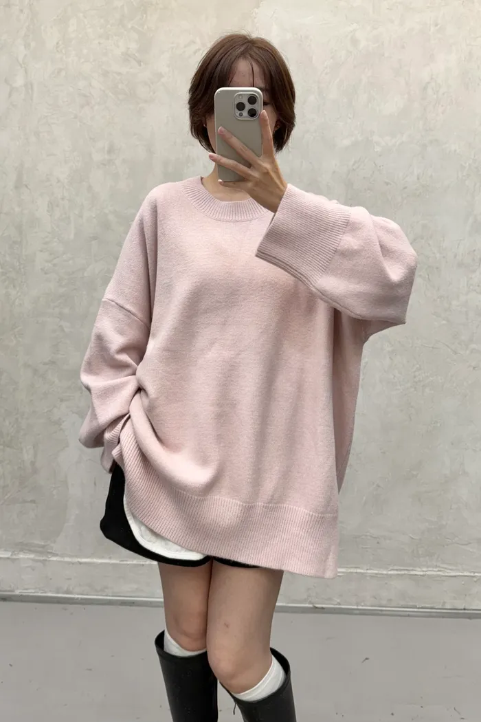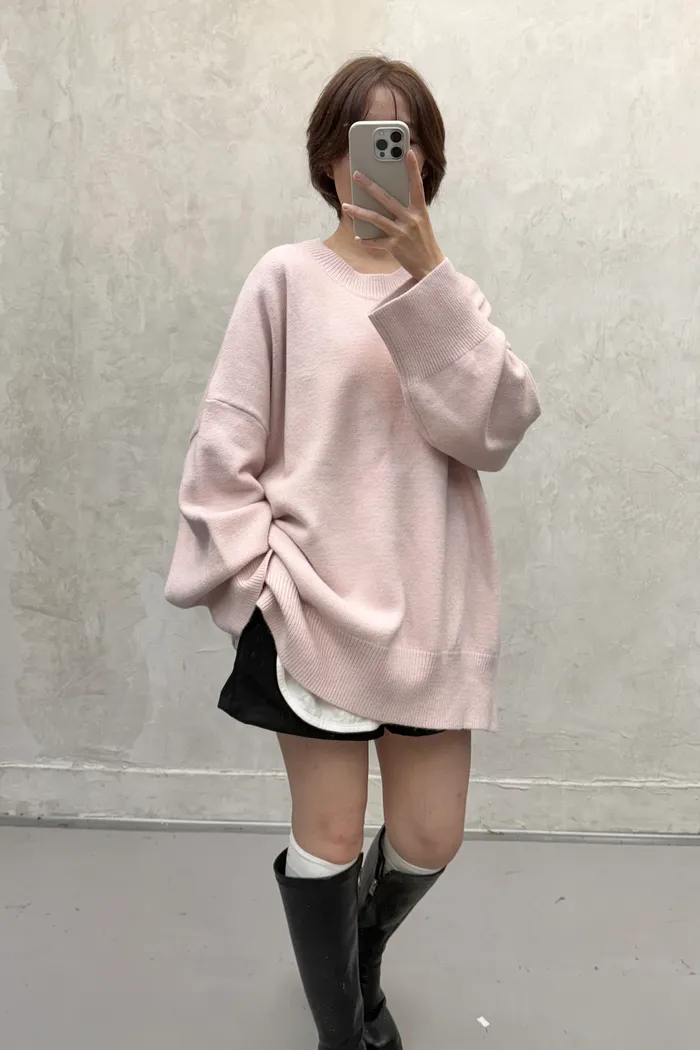特賣#3009 慵懶風.超柔感毛線紗寬毛衣-粉