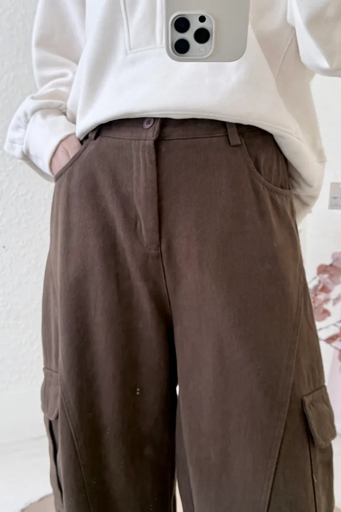 #3013 內磨毛工裝水洗彎刀褲(S~XL)
