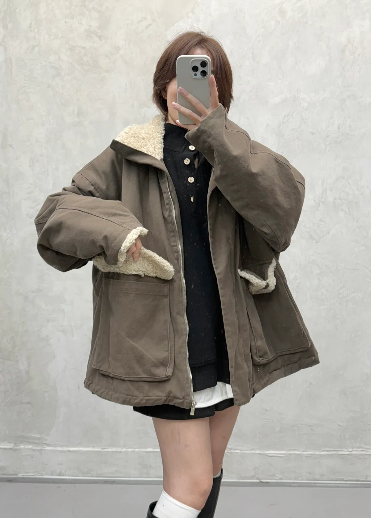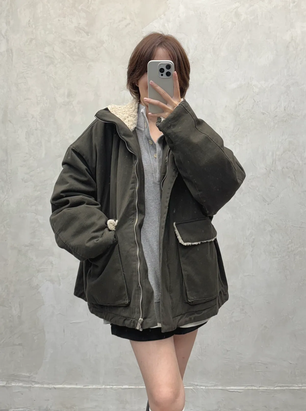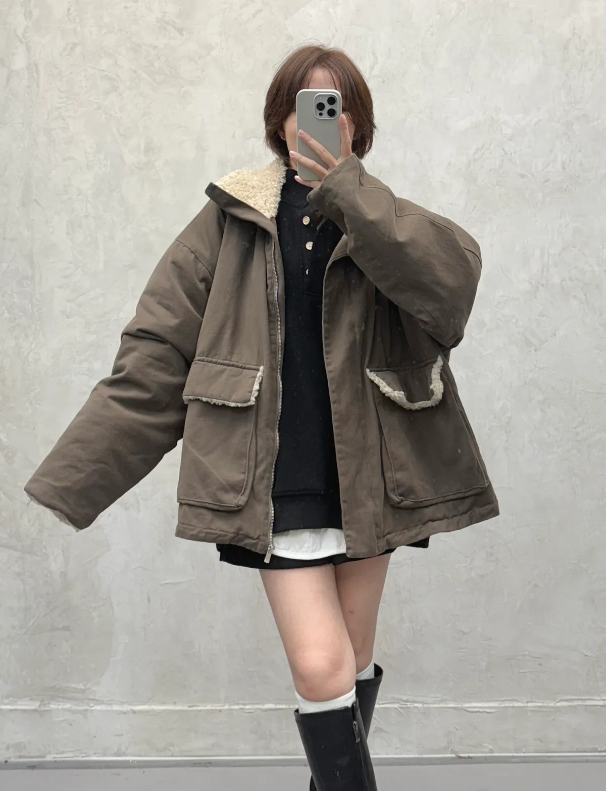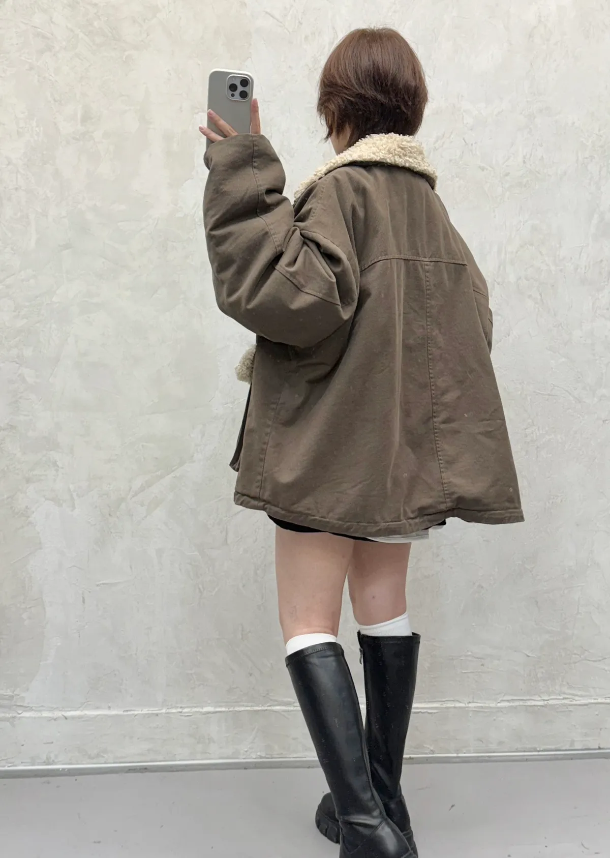 #3014 羊羔毛拼接鋪棉外套【現貨:灰綠】