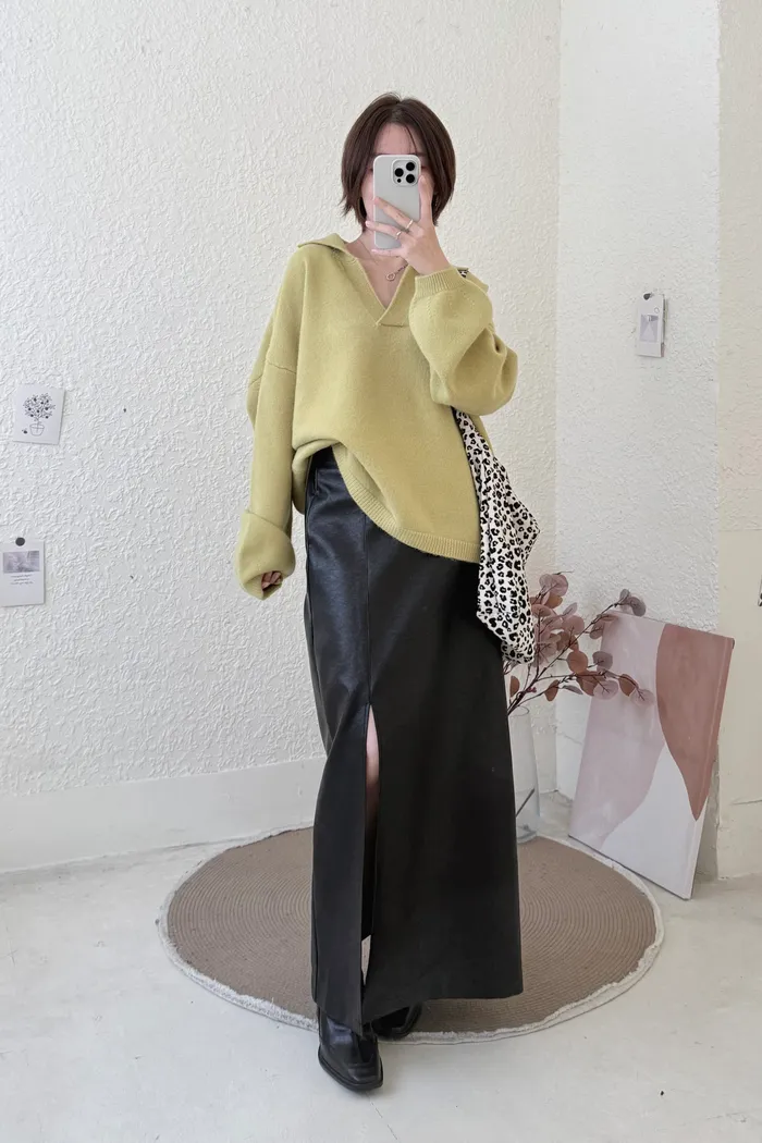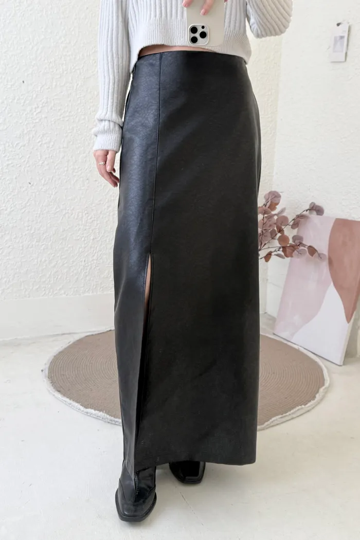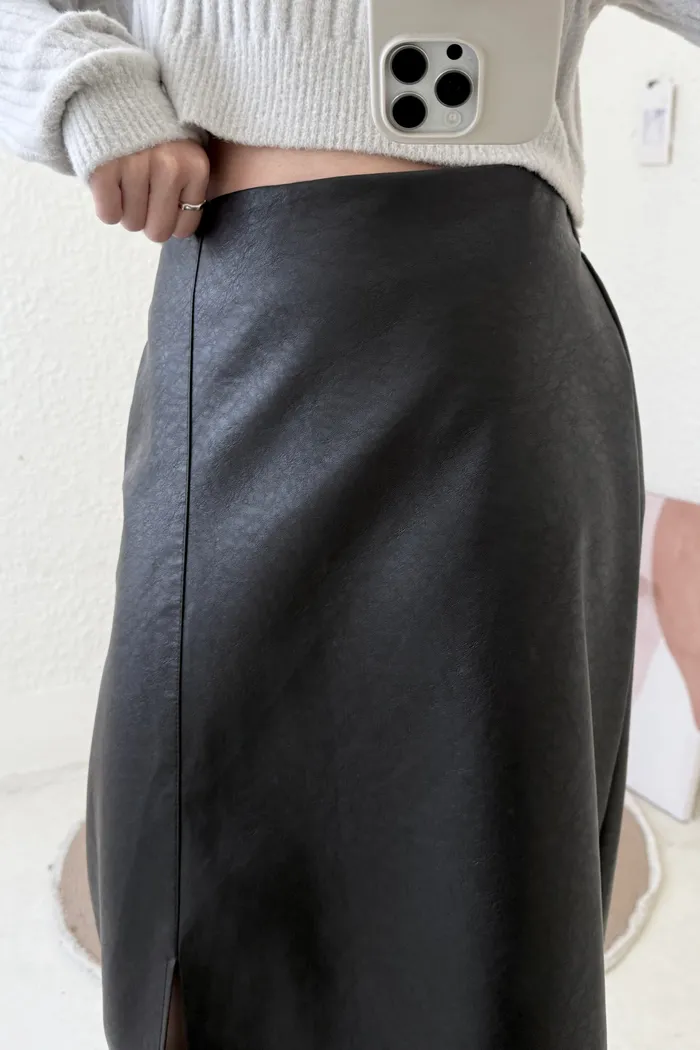 【現貨】#3118 側開衩皮革裙(S~小L)