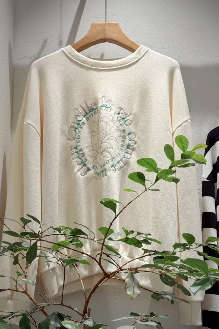 【現貨】#3205 刺繡花朵磨毛大學Tee