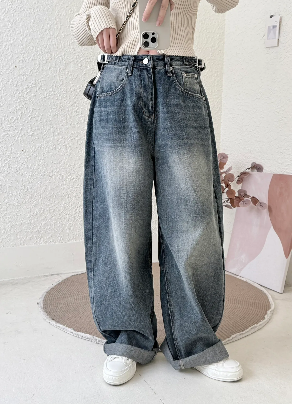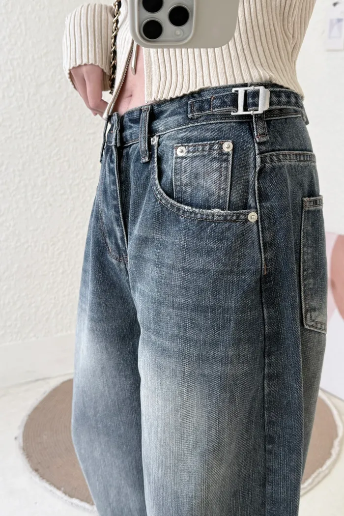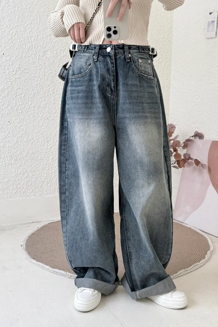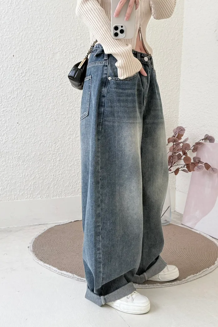 #3219 超瘦!率性鬆垮感牛仔彎刀褲(不穿低腰拿小一號)