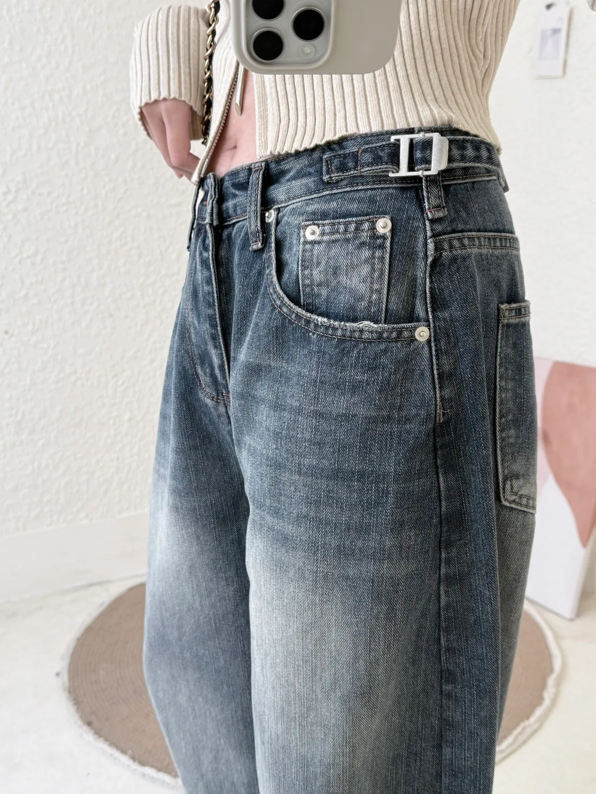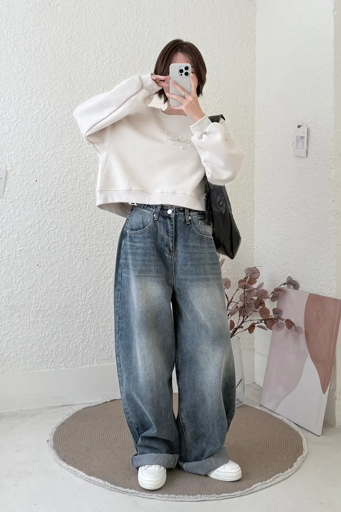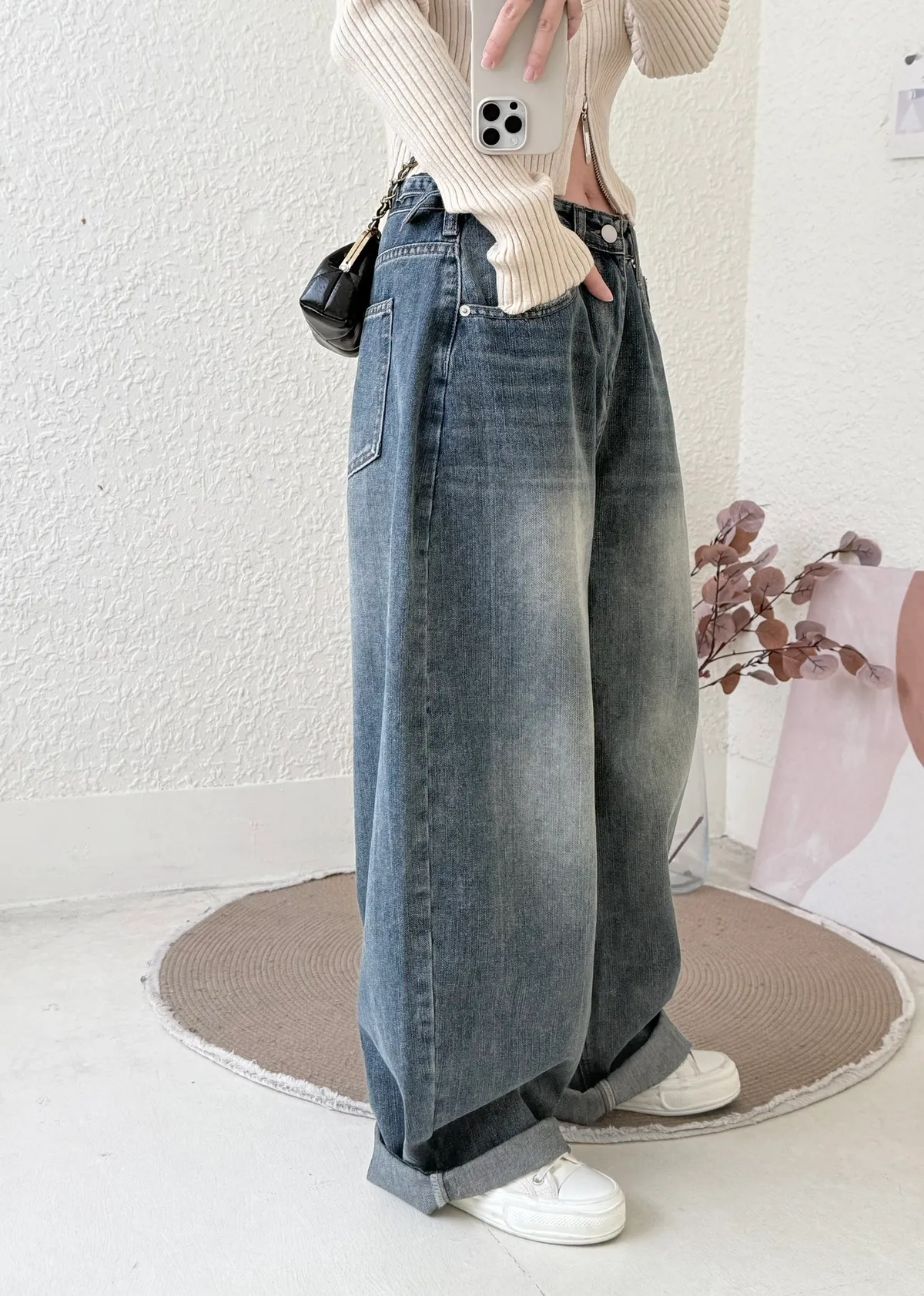 #3219 超瘦!率性鬆垮感牛仔彎刀褲(不穿低腰拿小一號)