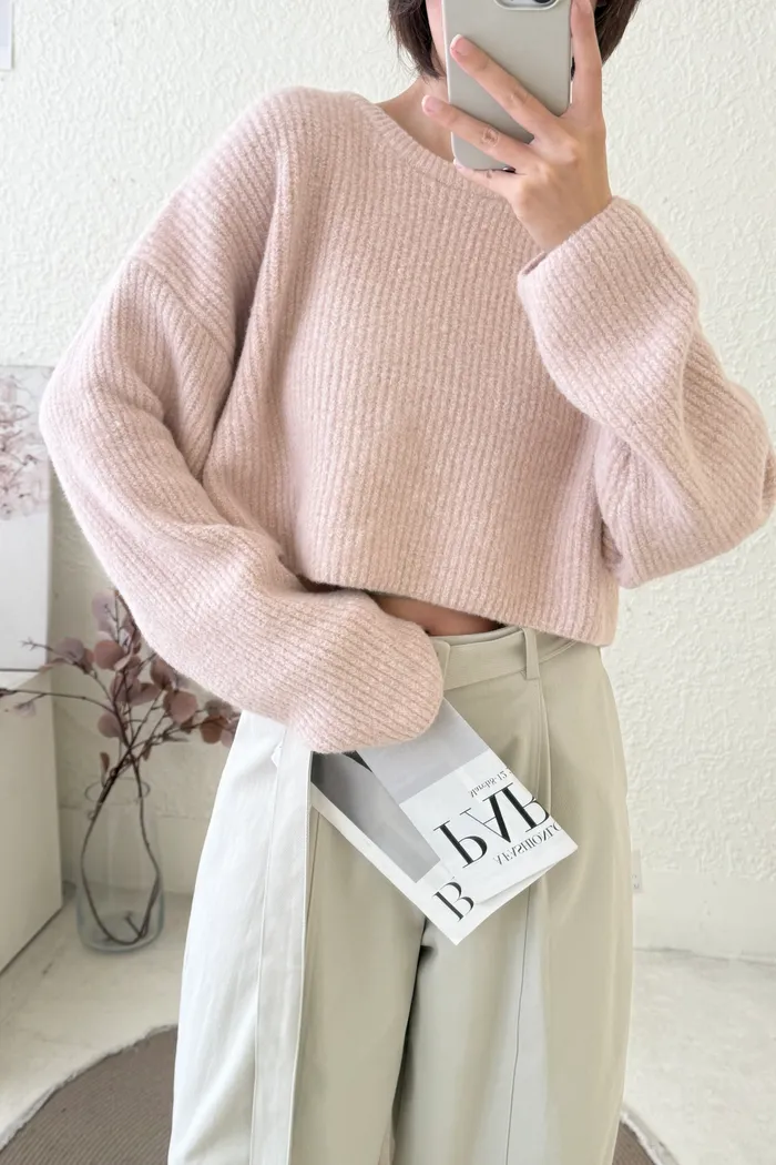 特賣#3302 雲朵紗系列.坑條短毛衣-紅