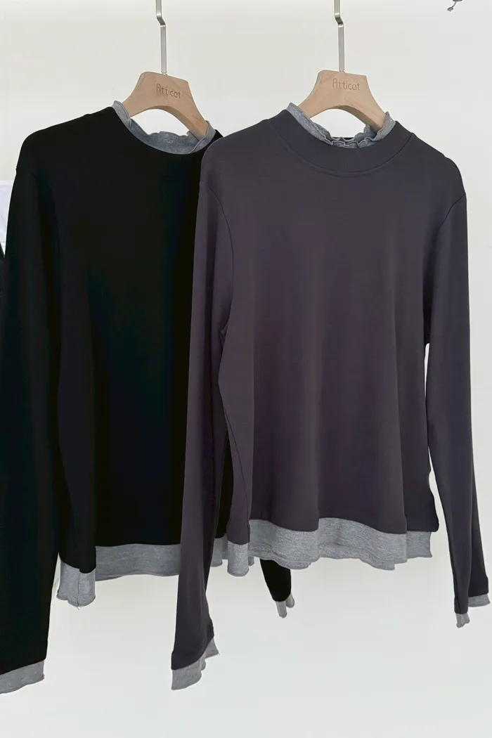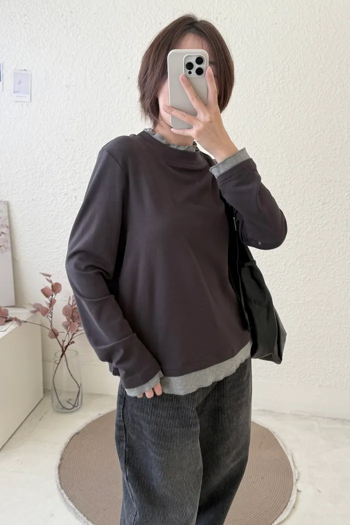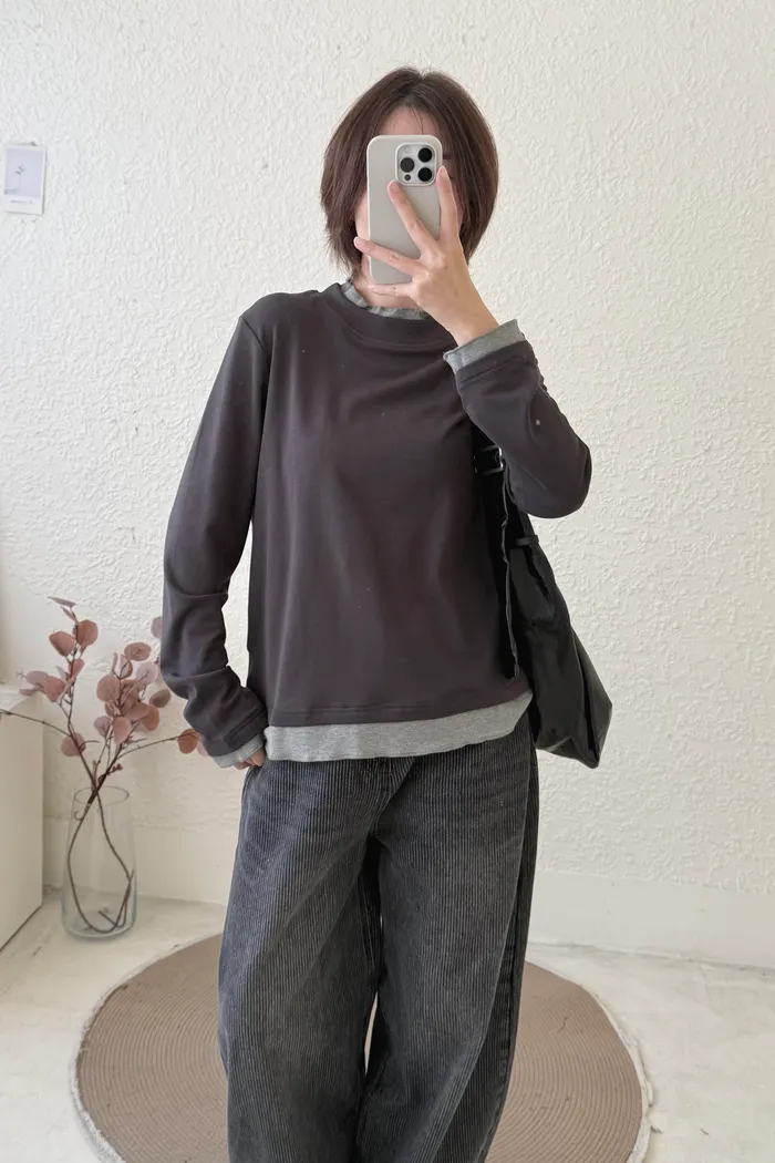 【1212限定】#3402 又美又暖 假兩件內磨毛棉Tee