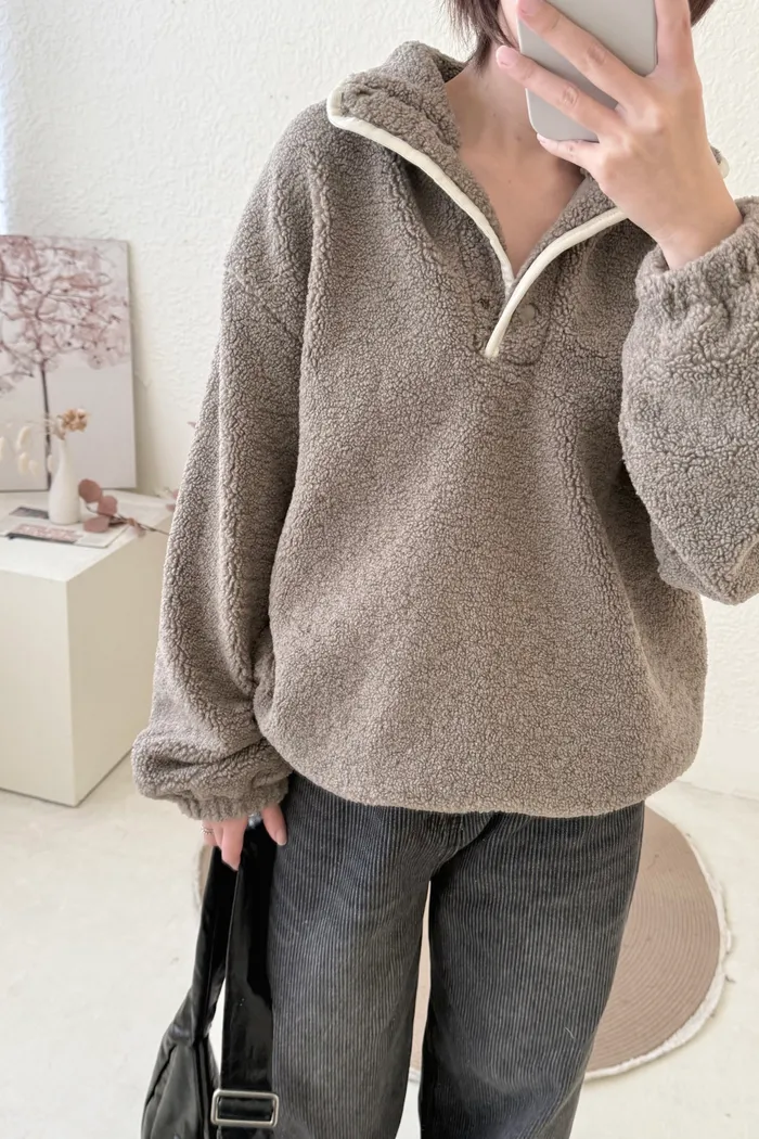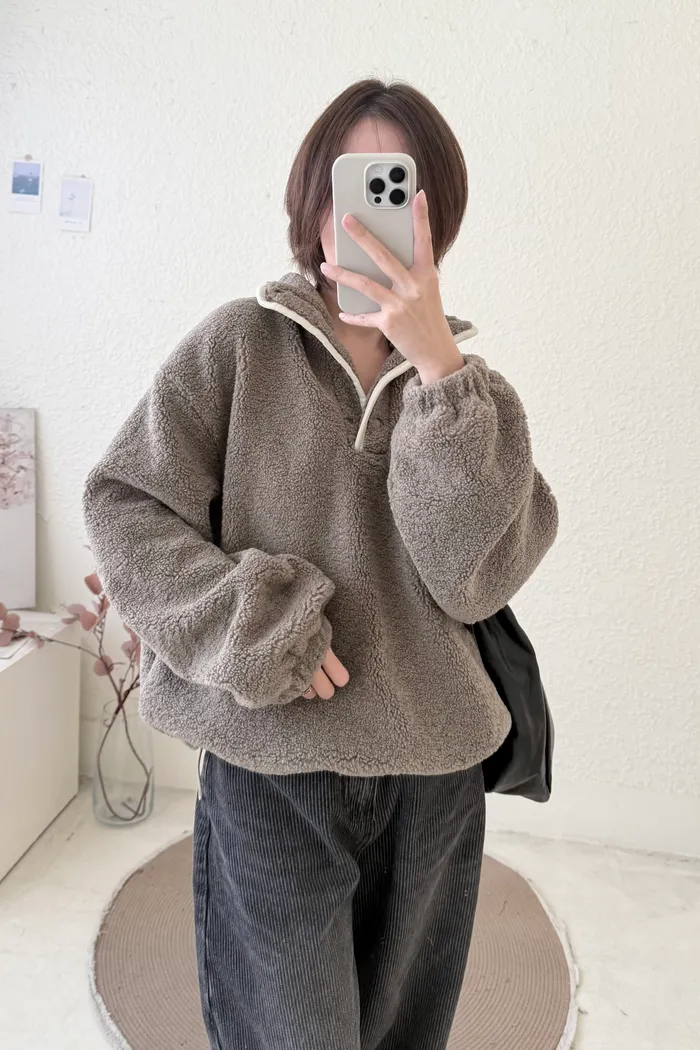 【1212限定】#3405 質感天花板 領配色羊羔毛上衣