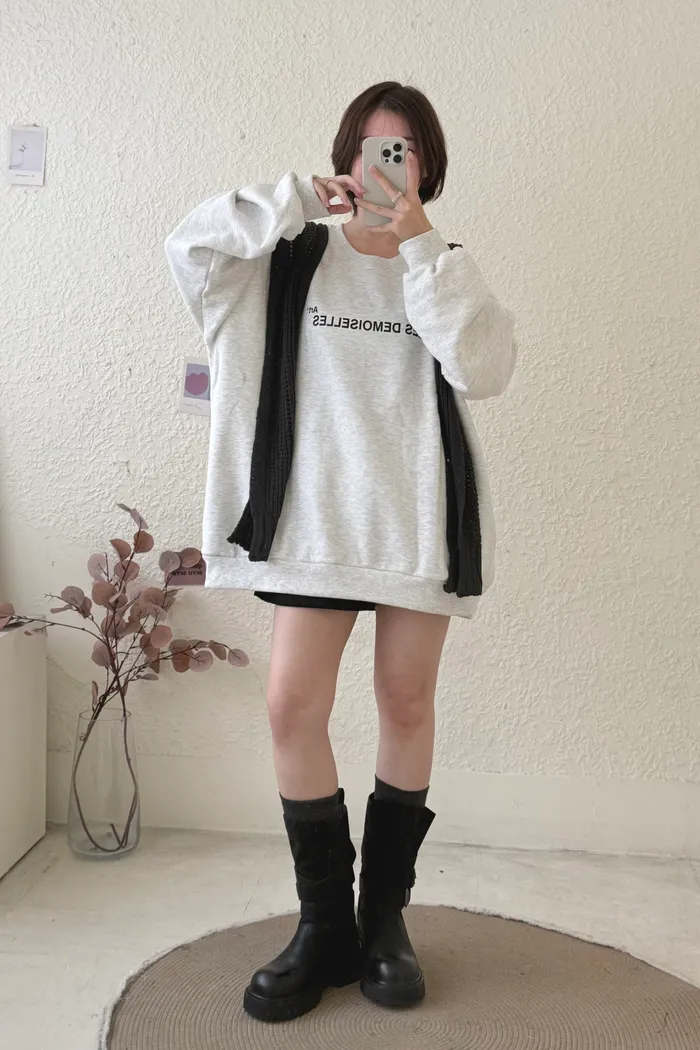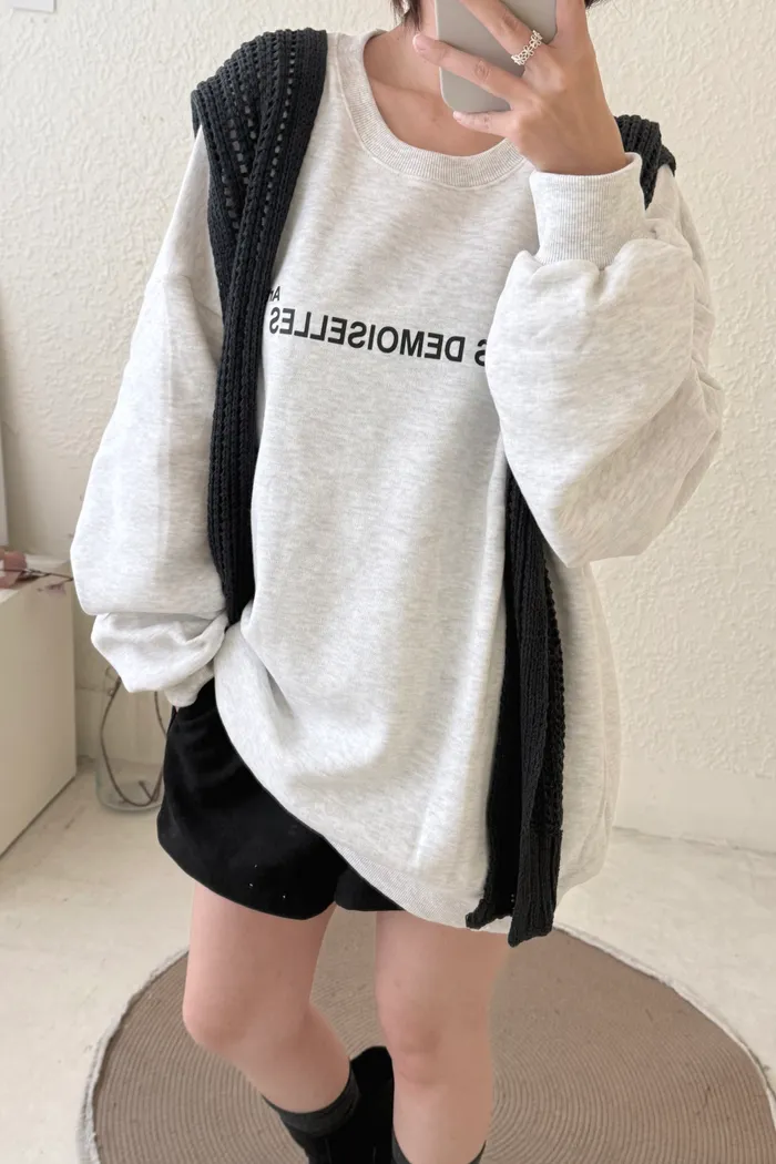 【現貨】#3503 男女共穿.LES DEMOISELLES內刷毛大學Tee-灰/黑