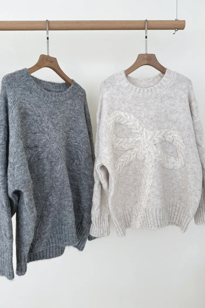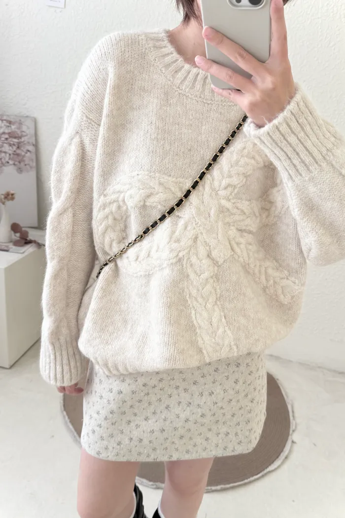 #3505 胸蝴蝶結毛線衣【現貨:花杏】