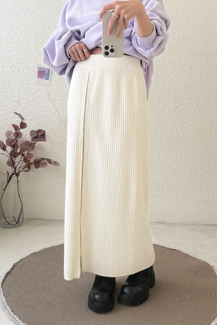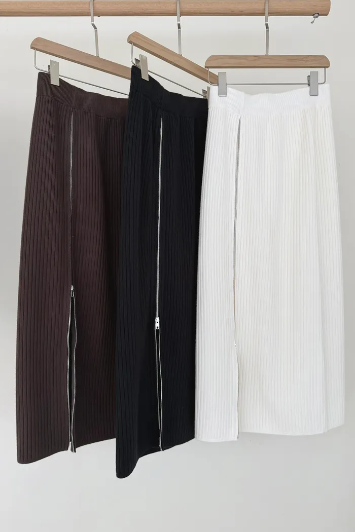 【現貨】#3607 拉鍊坑條針織裙(S~大L)-白