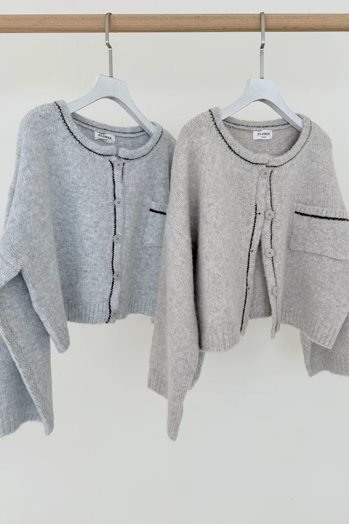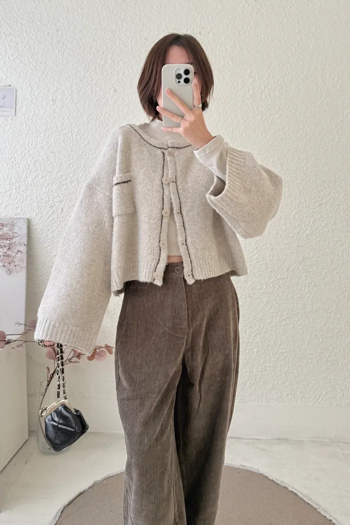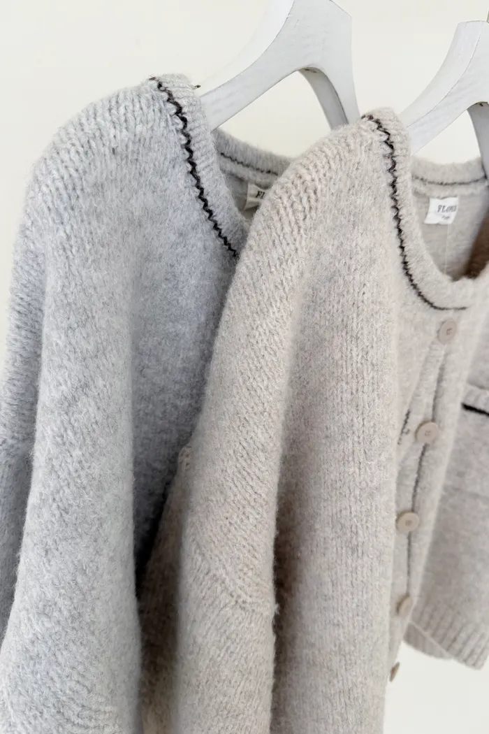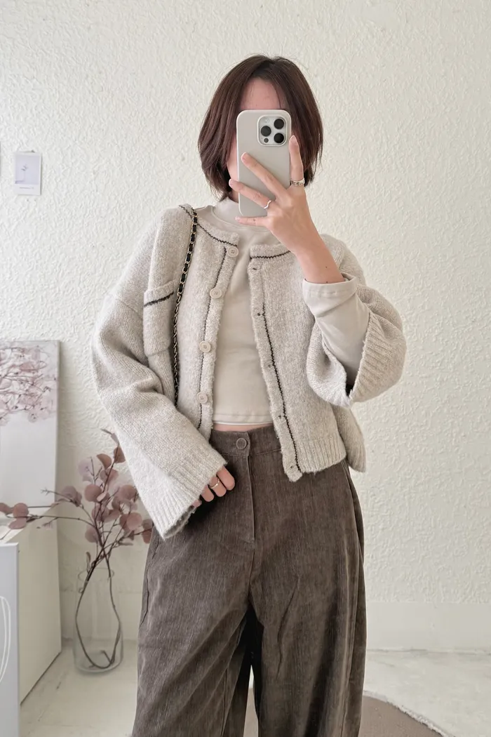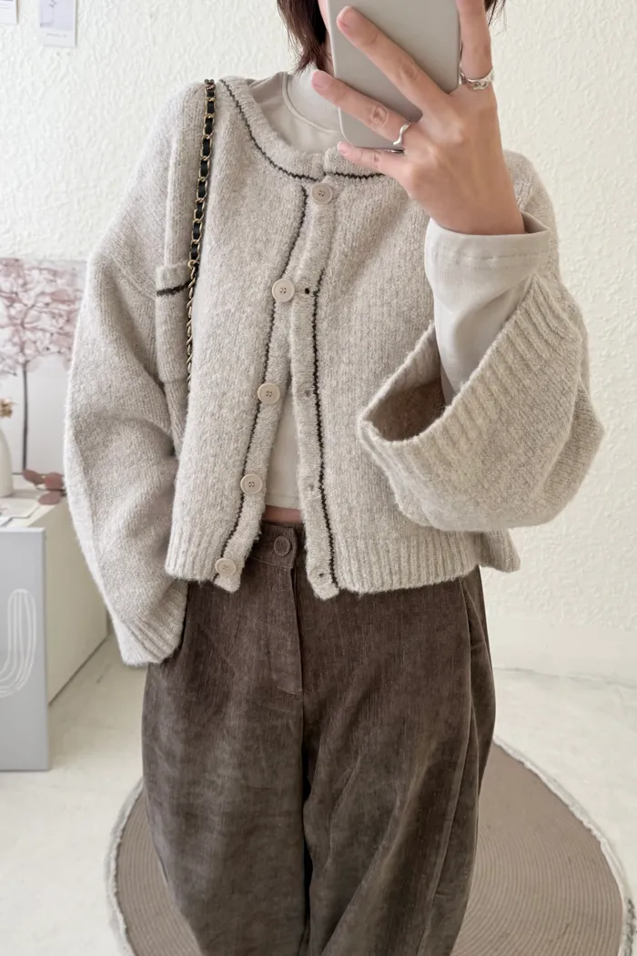 【現貨】#3608 壓線排釦針織外套-燕麥