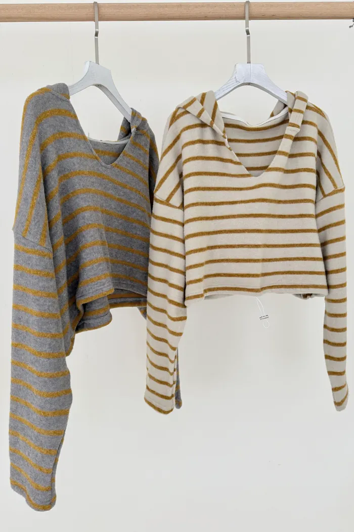 【現貨】#3609 V領條紋連帽短版上衣