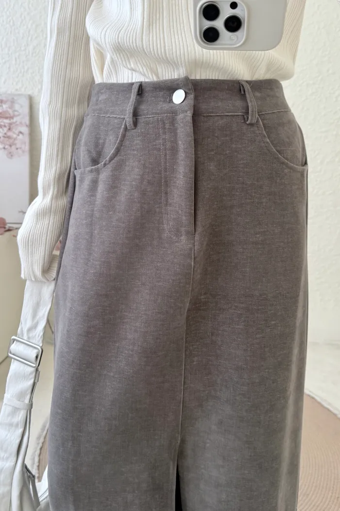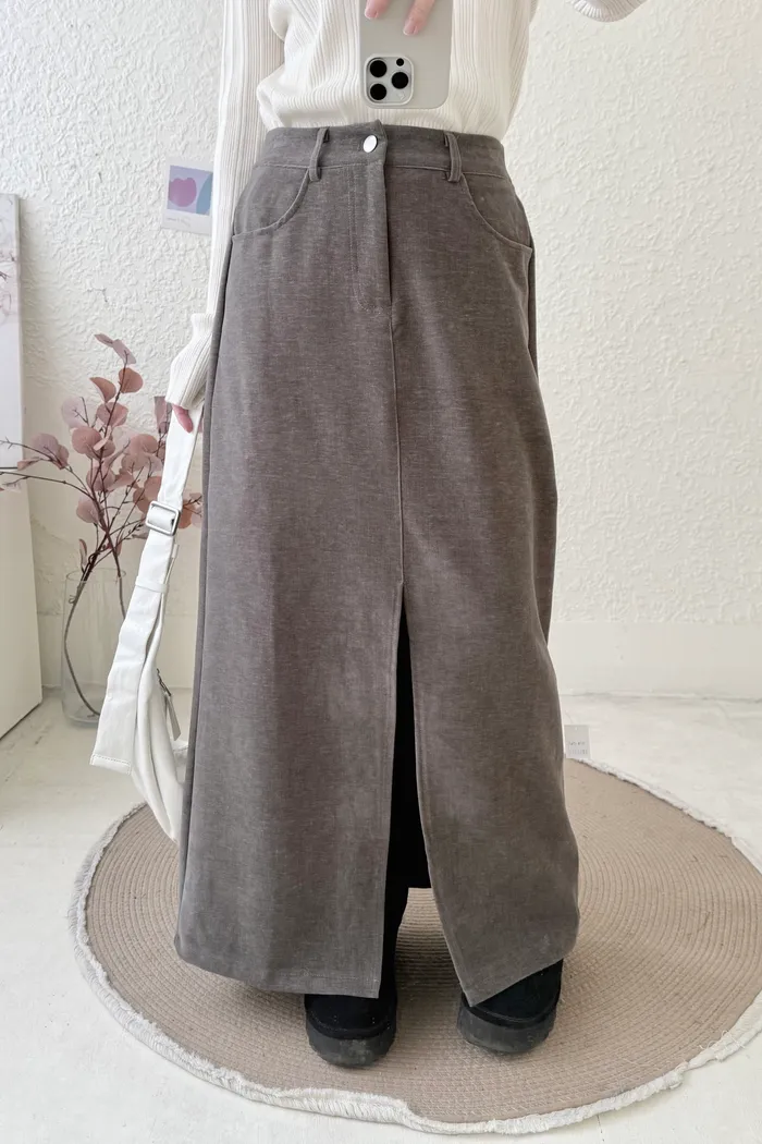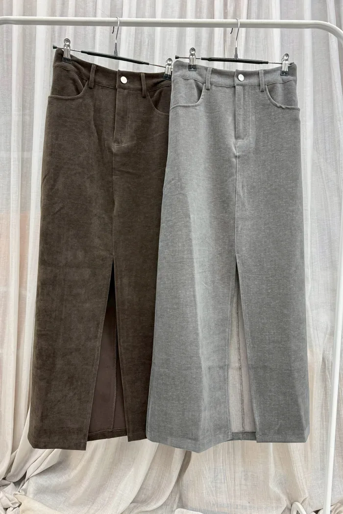 【現貨】#3616 前衩雪尼爾絨布裙(S~L)-咖啡