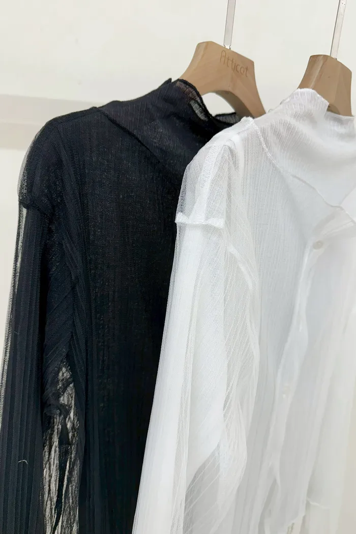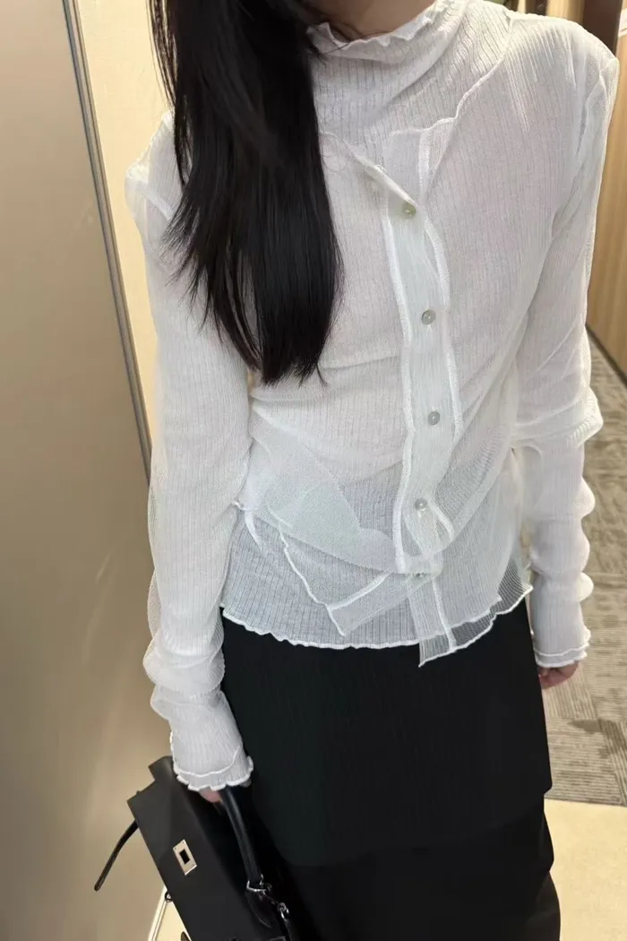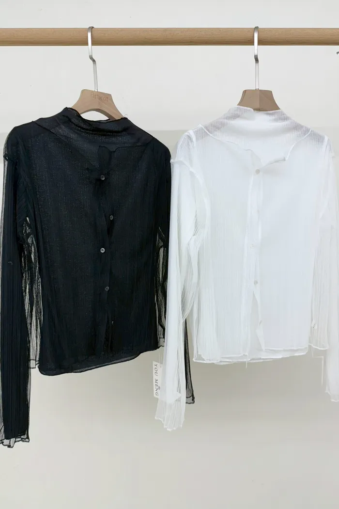 【現貨】#3701 春•半領透紗兩件式上衣(XS~M)