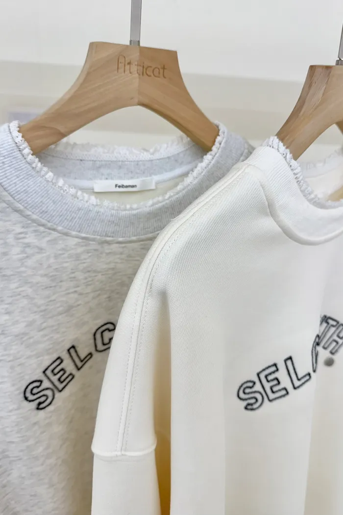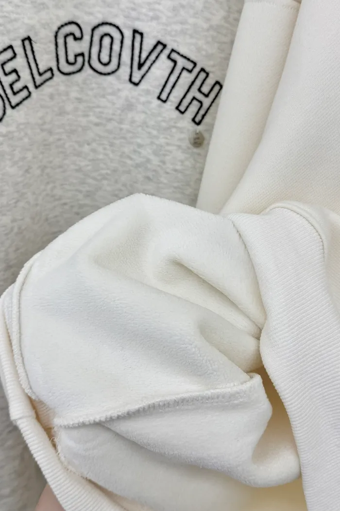 【現貨】#3706 蕾絲領英文字刷絨大學Tee-米白