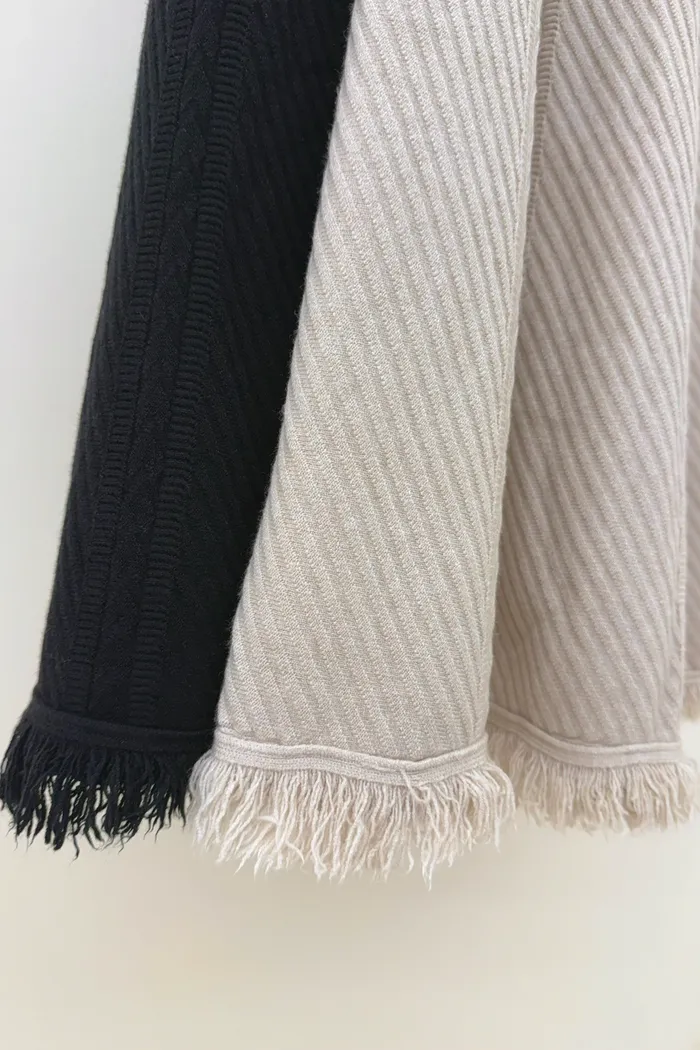 【現貨】#3708 加長版.斜織紋流蘇針織散裙(S~XL)-黑