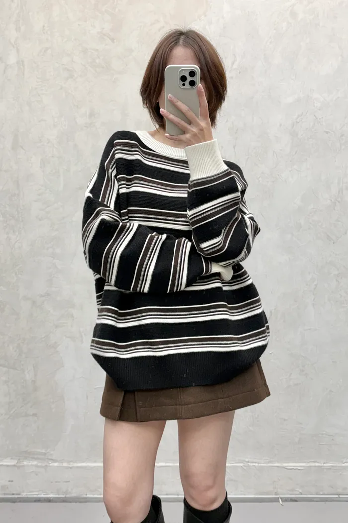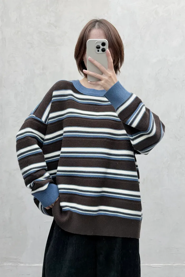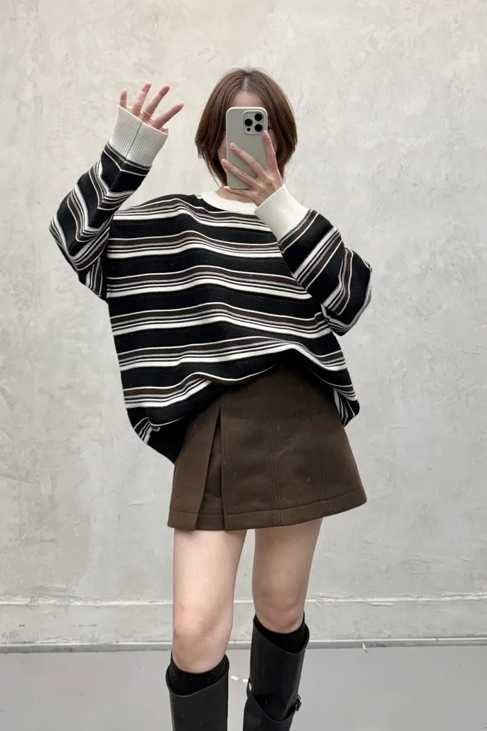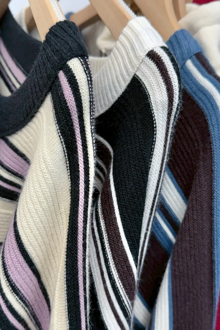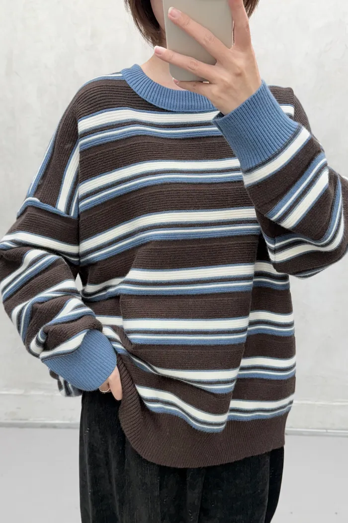 【現貨】#3802 坑條紋配色針織毛衣