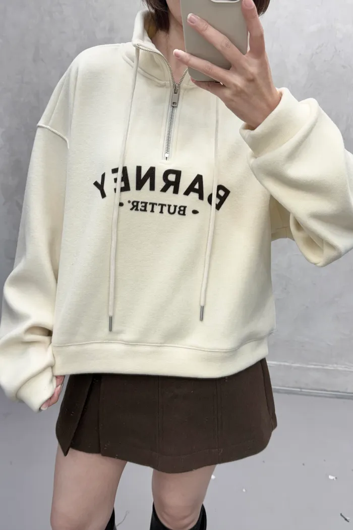 【現貨】#3808 BARNEY半拉鍊內刷絨Tee