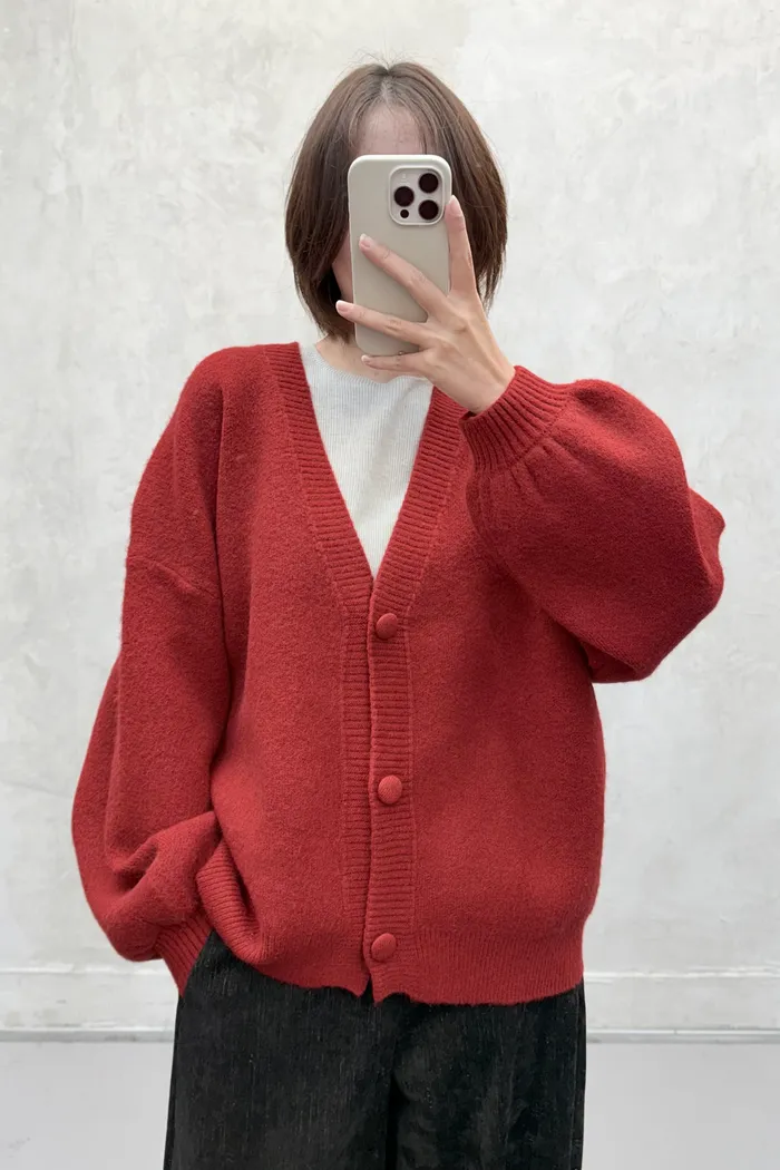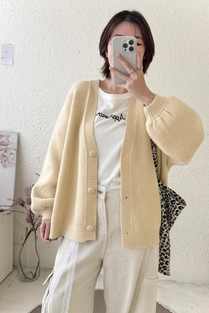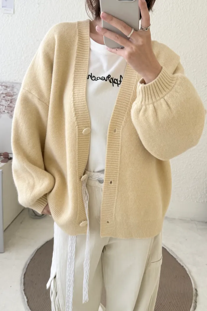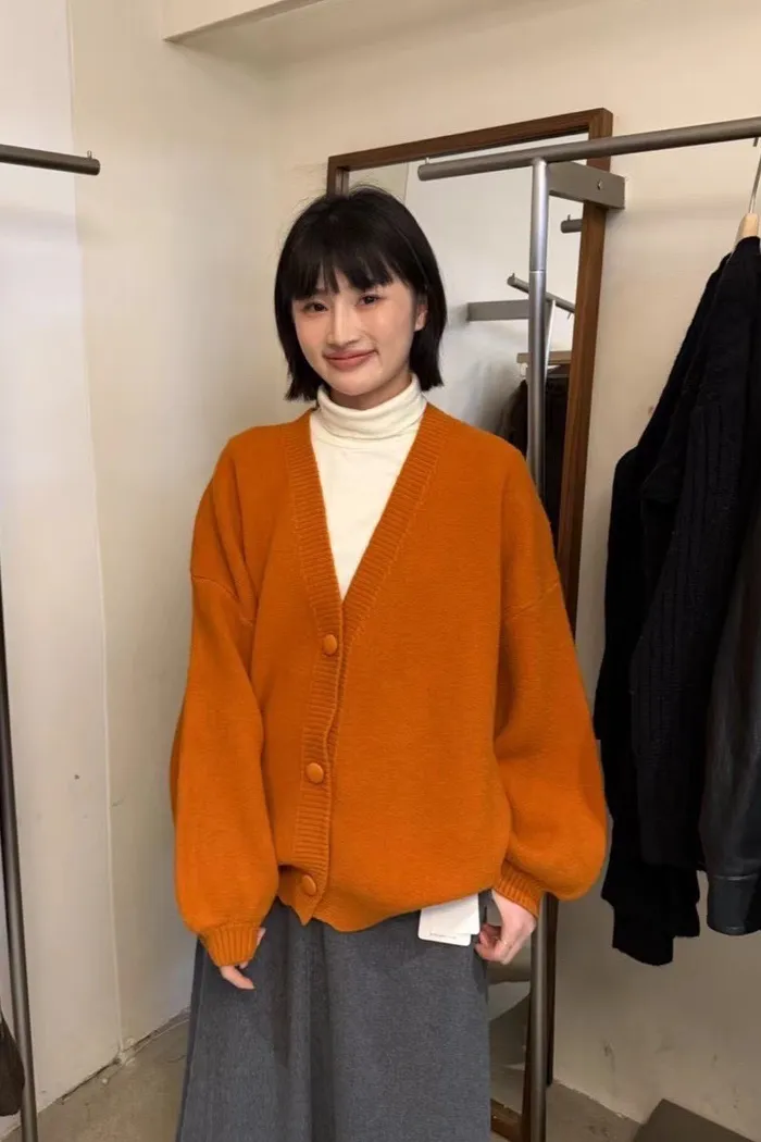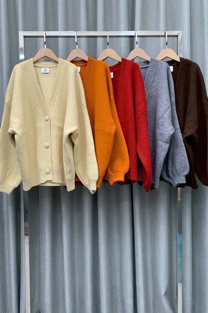 【現貨】#3811 包布釦厚磅毛衣外套-黃/橘/灰