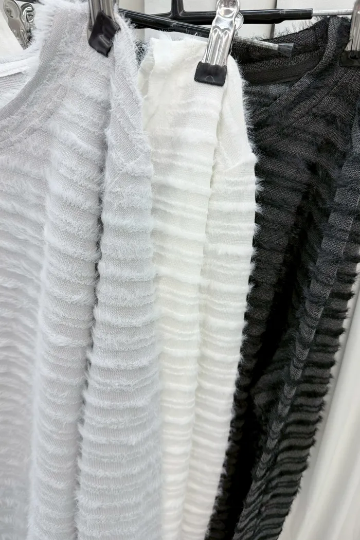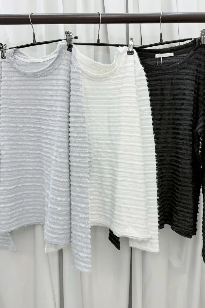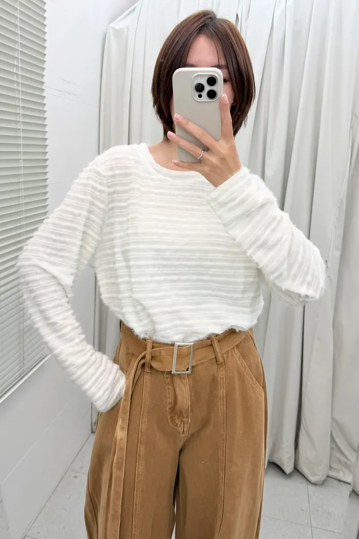 【現貨】#3913 春 毛毛條針織棉上衣-白色