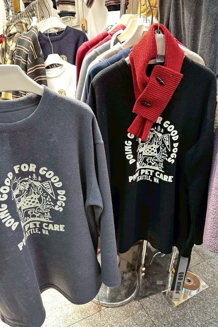 【現貨】#4006 卡通狗狗內刷毛棉Tee-灰
