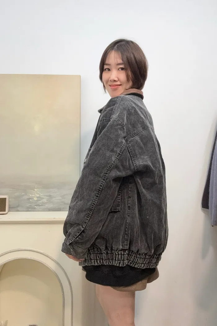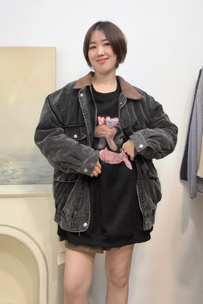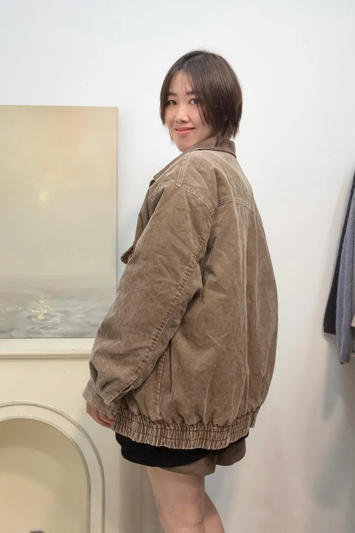 [廠商現貨]#4012 配色領燈芯絨鋪棉外套