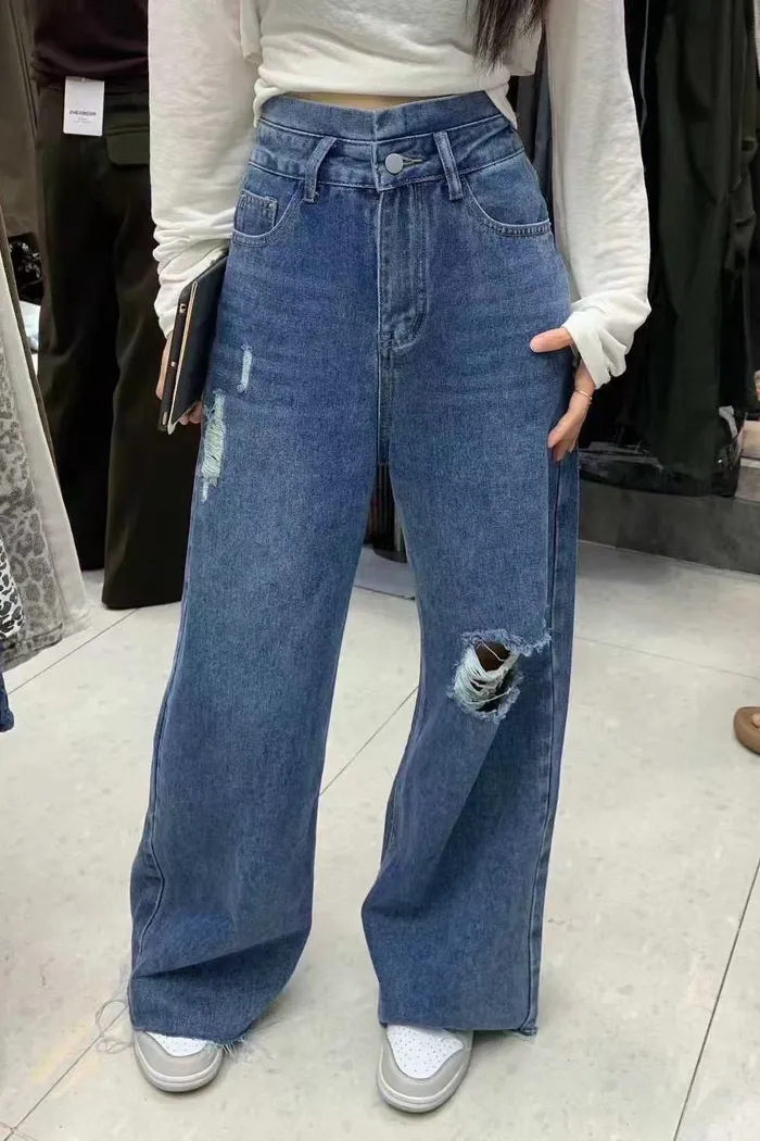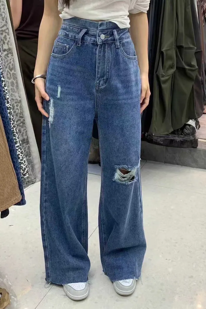 [廠商現貨]#4018 膝割破造型直筒牛仔褲