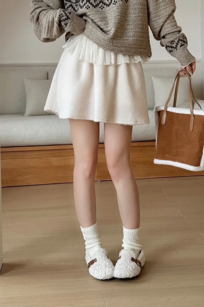 [廠商現貨]#4019 超可愛羊羔毛短裙(S~XL)
