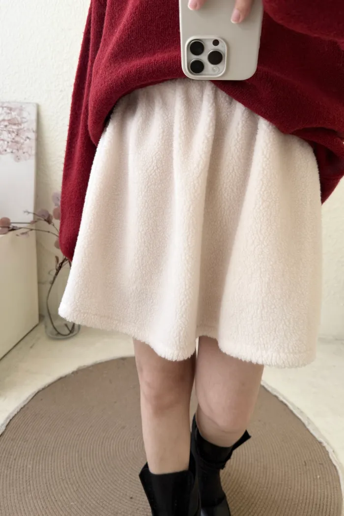 【現貨】4019 超可愛羊羔毛短裙(S~XL)