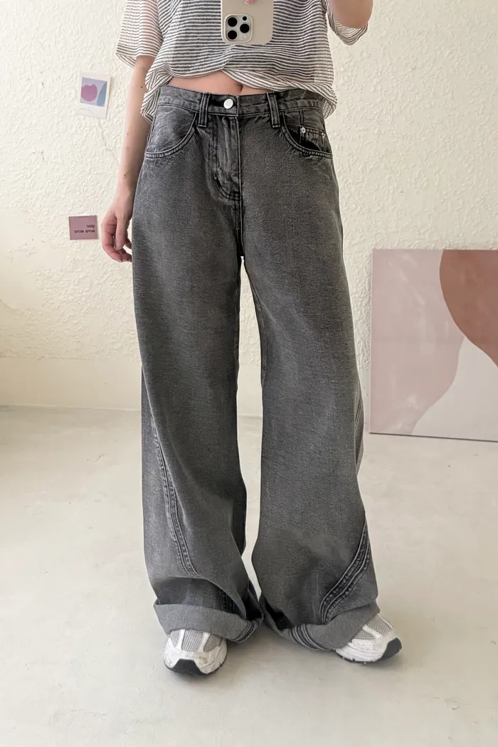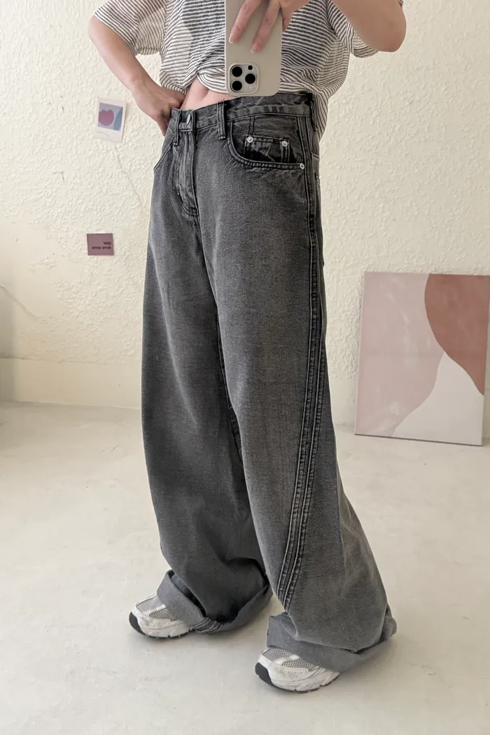 #4415 墨黑牛仔小彎刀褲(版型偏大)